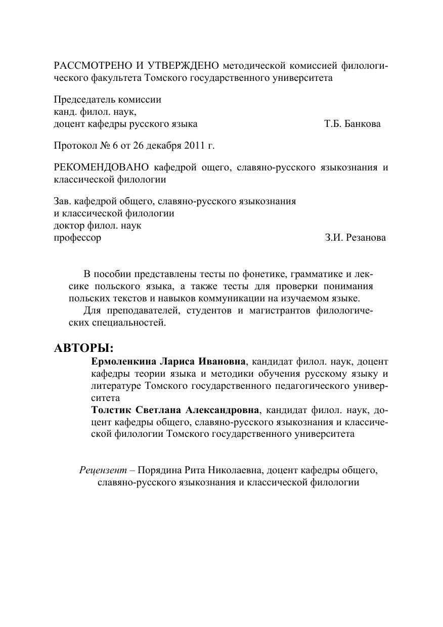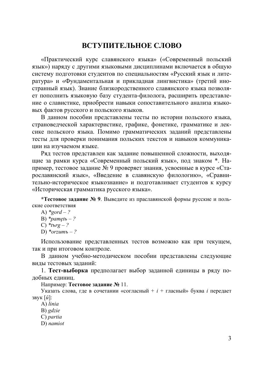 В пособии представлены тесты по фонетике, грамматике и лексике польского языка, а также тесты для проверки понимания польских текстов и навыков коммуникации на изучаемом языке. Для преподавателей, студентов и магистрантов филологических специальностей.