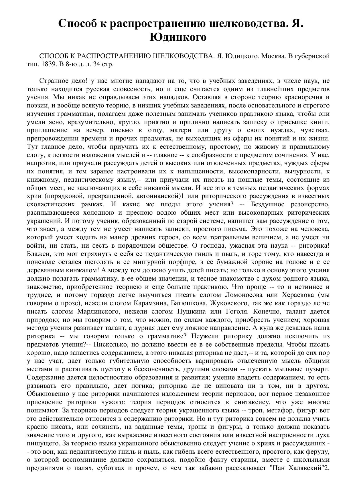 Способ к распространению шелководства. Я. Юдицкого