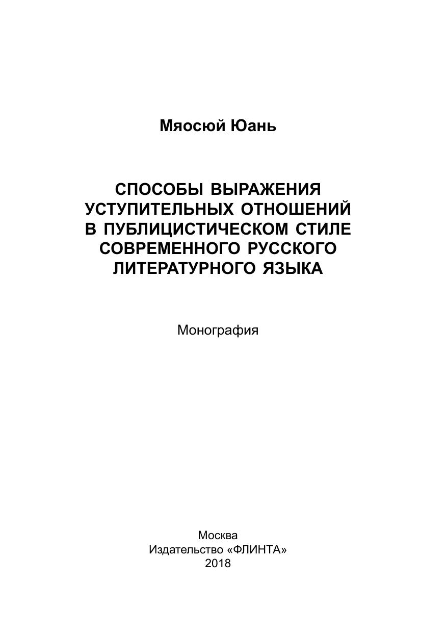 Способы выражения уступительных отношений в публицистическом стиле современного русского литературного языка: монография