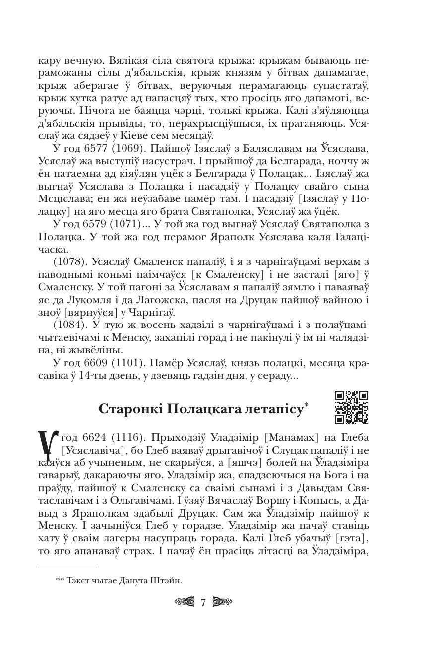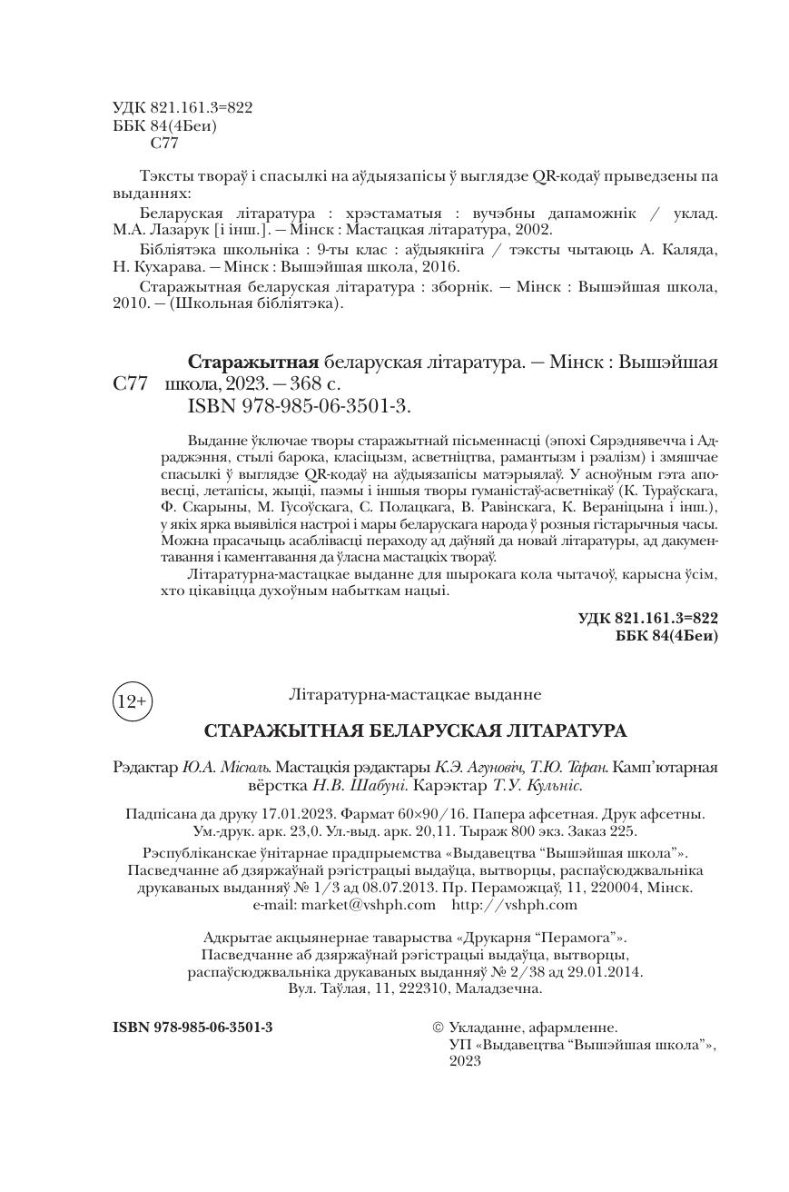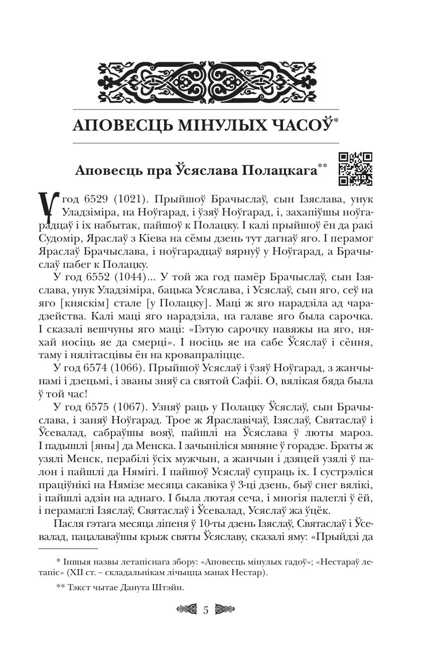 Выданне ўключае творы старажытнай пісьменнасці (эпохі Сярэднявечча і Адраджэння, стылі барока, класіцызм, асветніцтва, рамантызм і рэалізм) і змяшчае спасылкі ў выглядзе QR-кодаў на аўдыязапісы матэрыялаў. У асноўным гэта аповесці, летапісы, жыціі, паэмы і іншыя творы гуманістаў-асветнікаў (К. Тураўскага, Ф. Скарыны, М. Гусоўскага, С. Полацкага, В. Равінскага, К. Вераніцына і інш.), у якіх ярка выявіліся настроі і мары беларускага народа ў розныя гістарычныя часы. Можна прасачыць асаблівасці пераходу ад даўняй да новай літаратуры, ад дакументавання і каментавання да ўласна мастацкіх твораў.