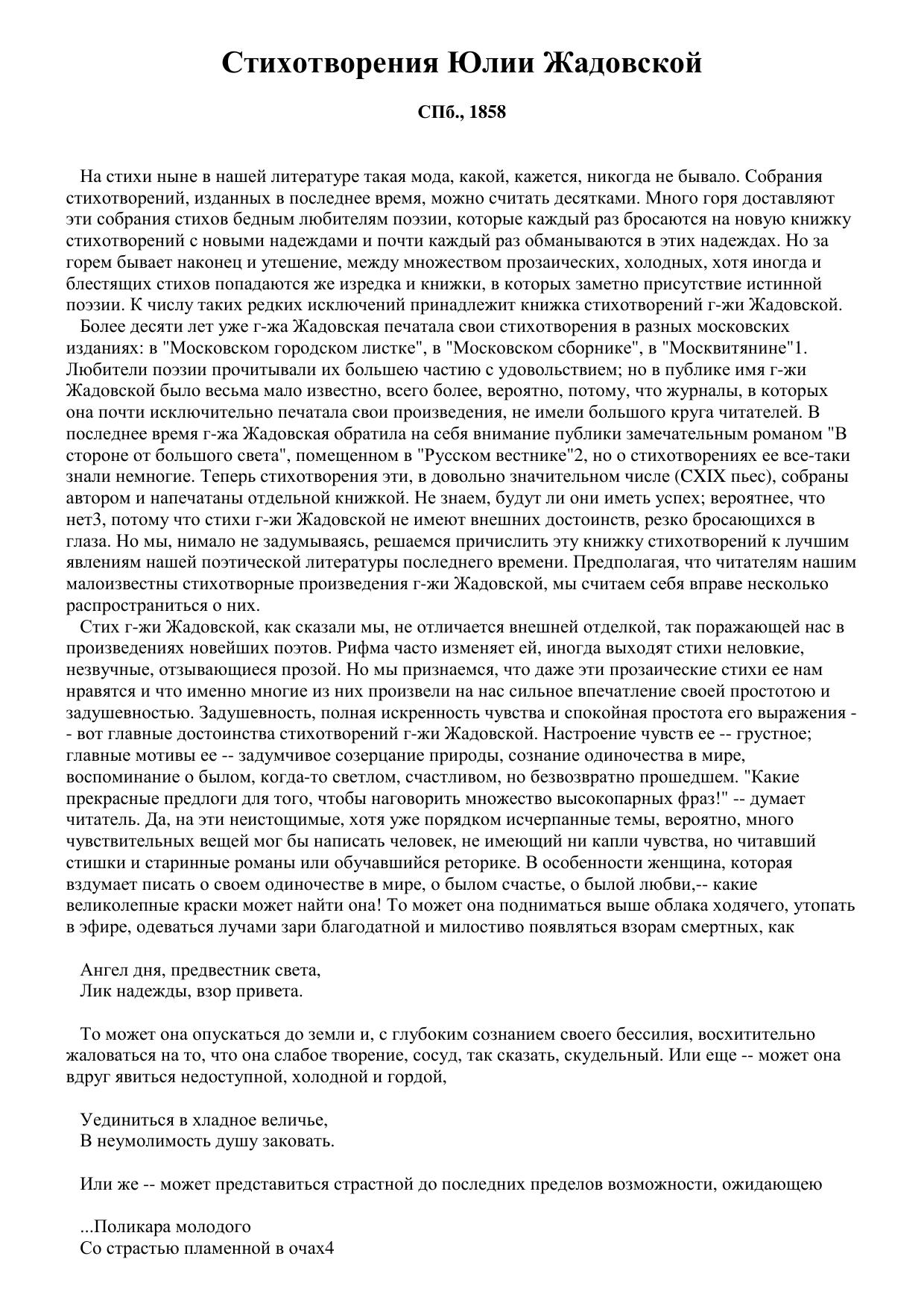 Стихотворения Юлии Жадовской