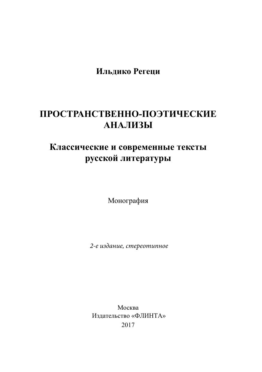Пространственно-поэтические анализы. Классические и современные тексты русской литературы