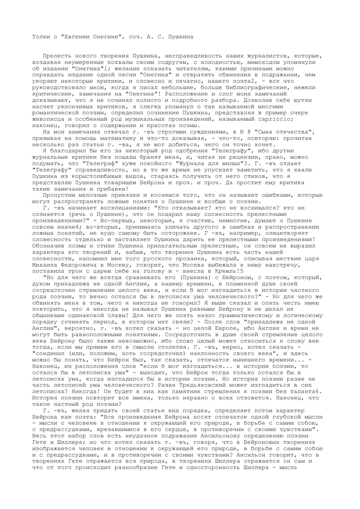 Толки о Евгении Онегине, соч. А. С. Пушкина