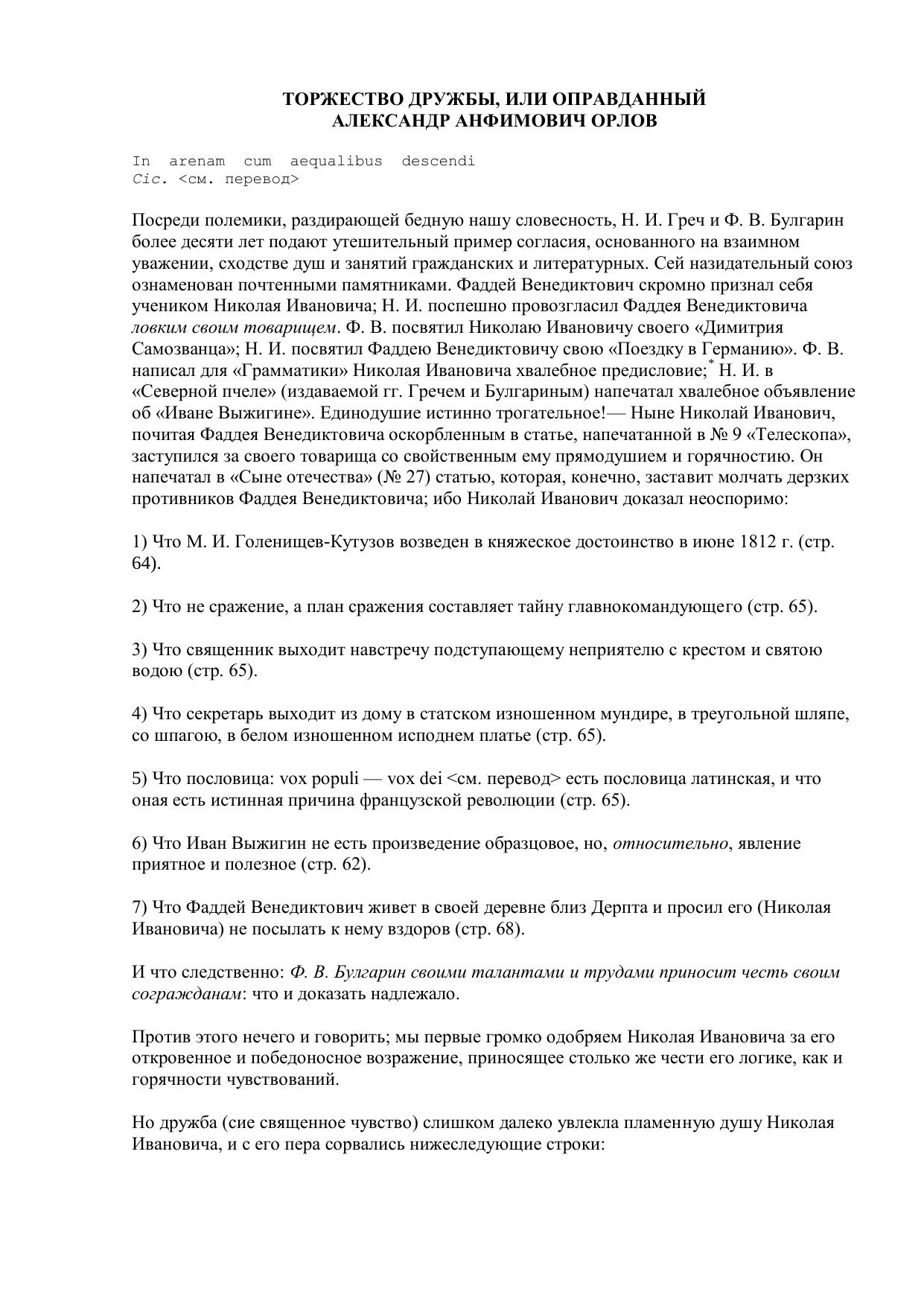 Торжество дружбы, или Оправданный Александр Анфимович Орлов