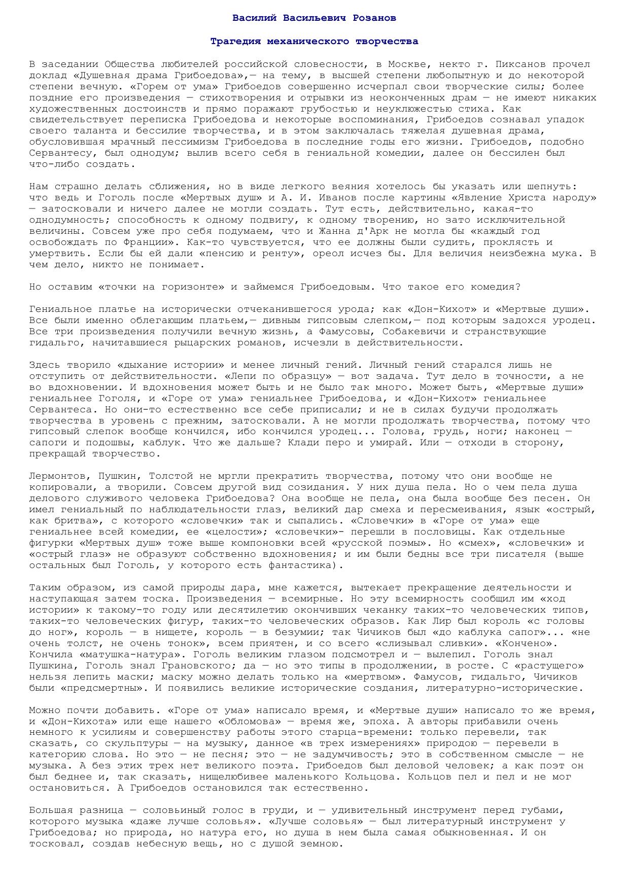 Трагедия механического творчества <Грибоедов и Гоголь>