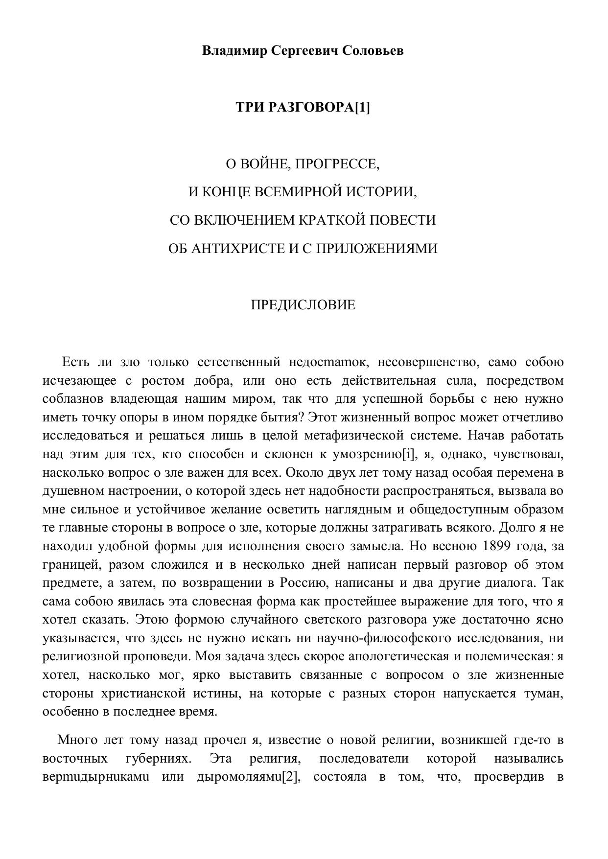 Три разговора о войне и прогрессе, и конце всемирной истории, со включением краткой повести об Антихристе