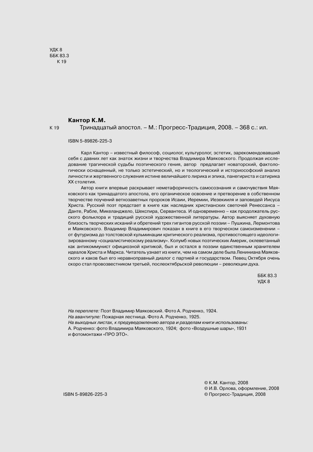 Карл Кантор – известный философ, социолог, культуролог, эстетик, зарекомендовавший себя с давних лет как знаток жизни и творчества Владимира Маяковского. Продолжая исследование трагической судьбы поэтического гения, автор предлагает новаторский, фактологически оснащенный, не только эстетический, но и теологический и историософский анализ личности и жертвенного служения истине величайшего лирика и эпика, панегириста и сатирика ХХ столетия.