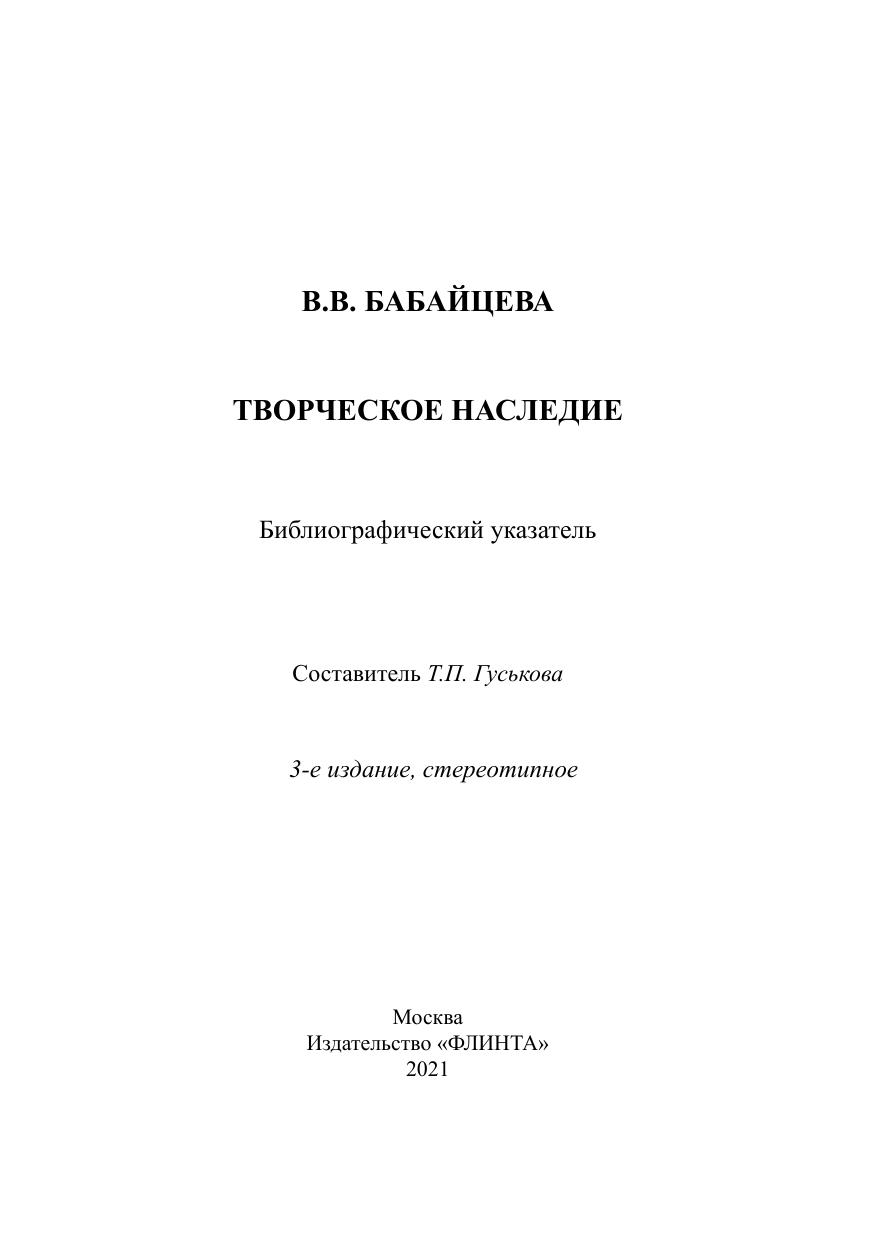 В библиографическом указателе содержатся сведения о научной, исследовательской и лингвометодической деятельности профессора доктора филологических наук В.В. Бабайцевой.