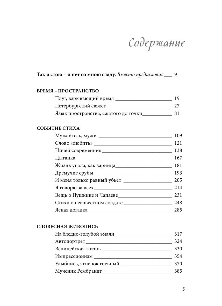 Книга состоит из работ о поэтическом мире Мандельштама. В первой части – «Время–пространство» – говорится о восприятии времени, о петербургской теме, о пространстве воронежской лирики, об особом художественном зрении Мандельштама и его визуально-пространственных образах. Вторая части книги – «Событие стиха» – посвящена отдельным стихотворениям 1918–1937 годов, начиная от поэтического осмысления революции («Сумерки свободы») и заканчивая последним стихотворением воронежской ссылки, образцом мандельштамовской любовной лирики («К пустой земле невольно припадая…»). Рассказывается история создания стихов, комментируются отдельные мотивы и образы, проясняется их значение – все это выстраивается в поэтическую биографию поэта. В третьей части – «Словесная живопись» – речь идет о связях поэзии Мандельштама с пластическими искусствами, здесь разбираются его стихи, написанные с опорой на образы живописи, керамики, фарфора. Разговор о стихах сопровождается иллюстрациями. Четвертую часть книги составляет рассказ о поездке Мандельштама в Армению в 1930 году, о его прозаическом «Путешествии в Армению» в сравнении с пушкинским «Путешествием в Арзрум», о стихах армянского цикла.