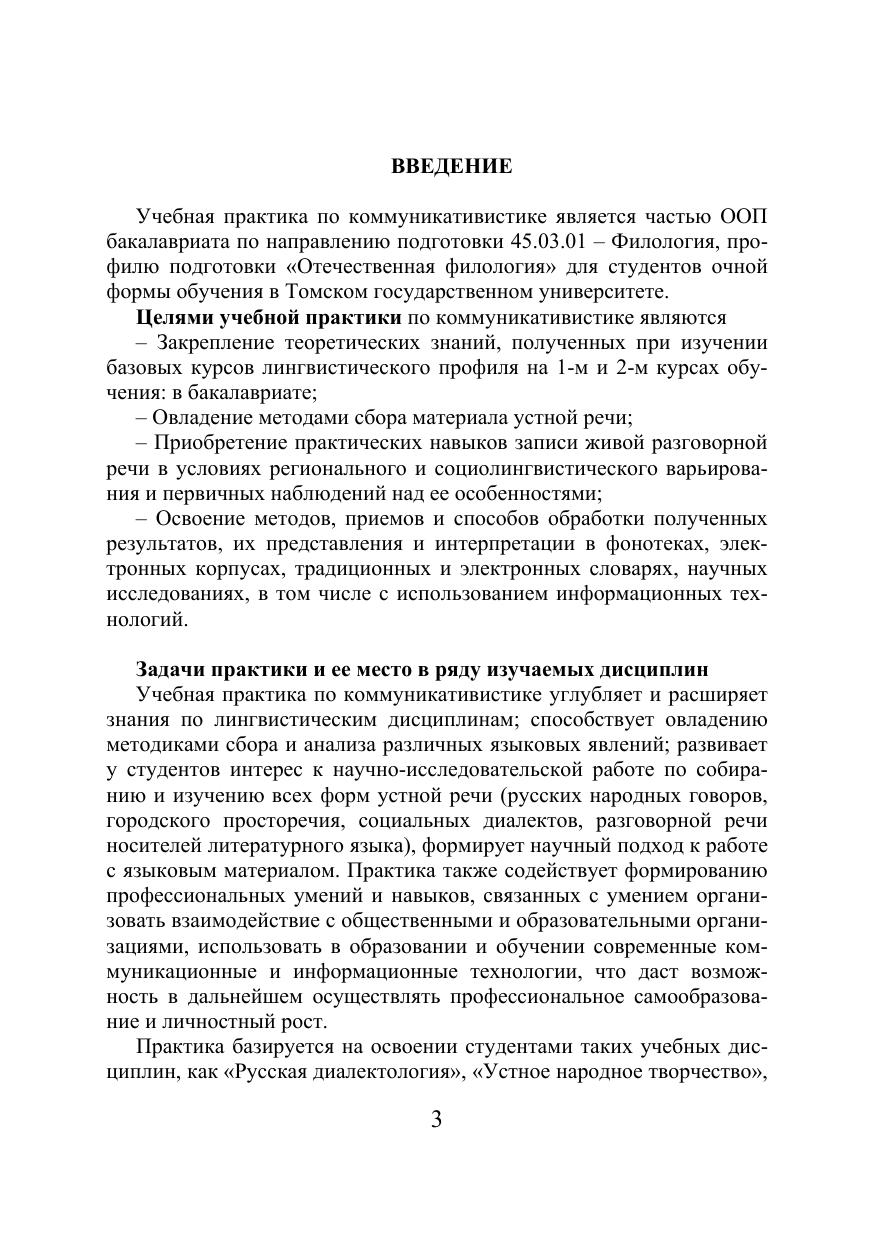 Пособие составлено в соответствии с программой учебной практики по коммуникативистике студентов филологического факультета. Освещаются общие установки проведения практики, детально описываются основные формы и этапы ее прохождения в полевом и стационарном режиме, методы сбора и обработки данных устной речи. Пособие содержит теоретический материал, тренировочные упражнения, вопросники и памятки для подготовки студентов к практике. Особое внимание уделено организации диалектологических экспедиций и созданию электронного архива текстов, отражающих речевую культуру носителей старожильческих говоров. Для студентов вузов, обучающихся по направлению «Филология», а также аспирантов, преподавателей, научных сотрудников, занимающихся изучением устной речи.