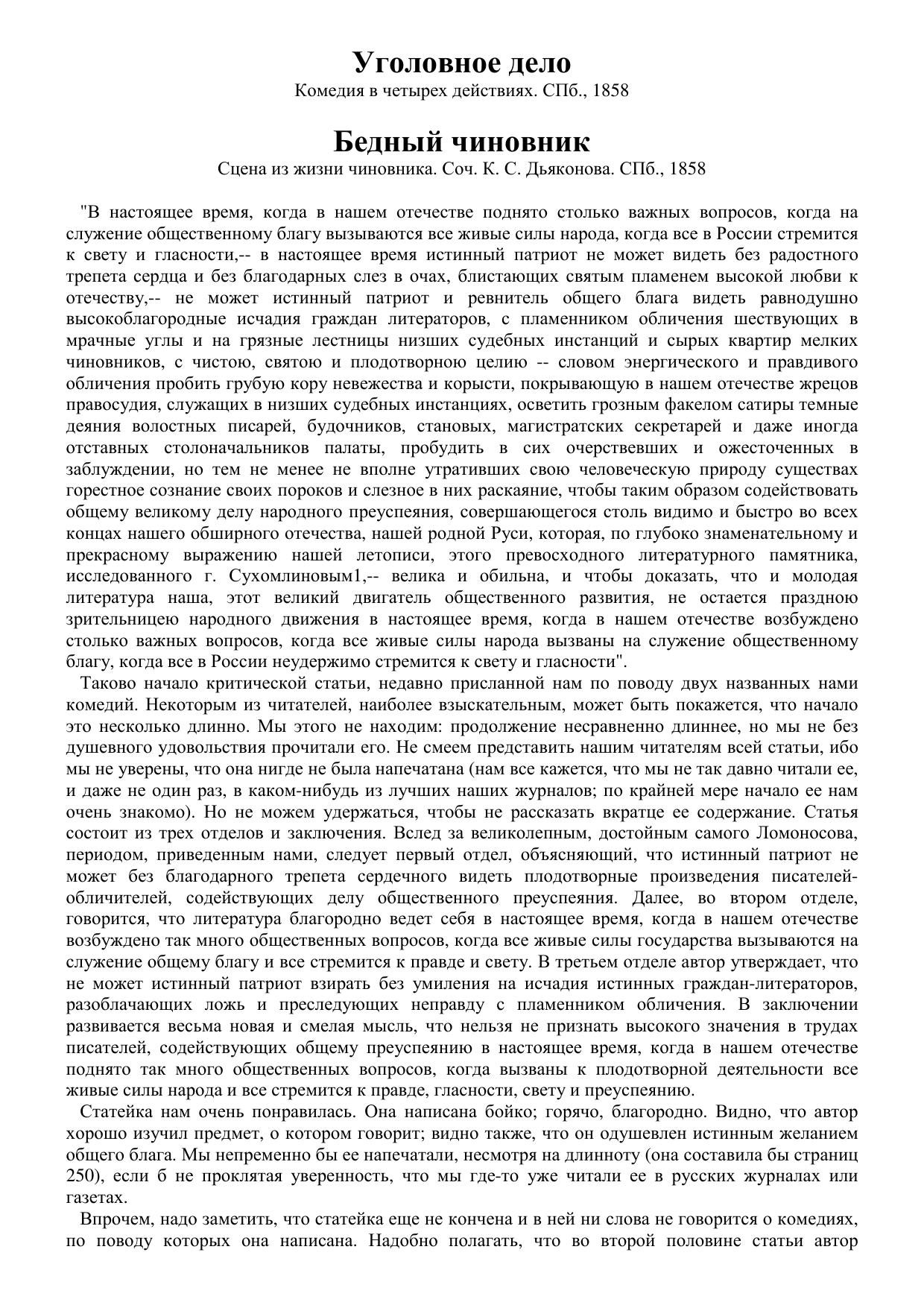 Уголовное дело. Бедный чиновник. Соч. К. С. Дьяконова