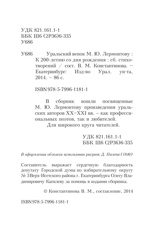 Уральский венок М. Ю. Лермонтову : К 200-летию со дня рождения : сб. стихотворений