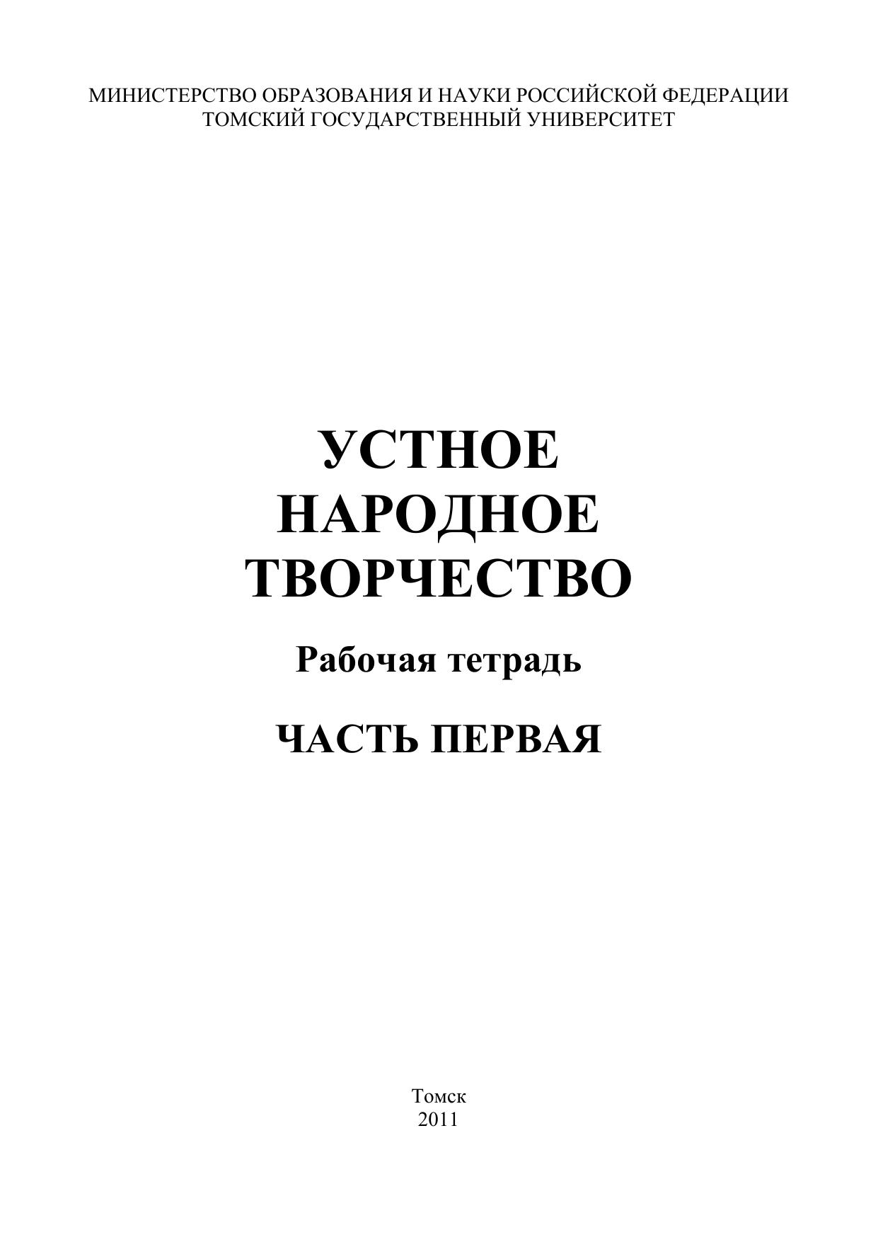 Рабочая тетрадь предназначена для организации обучающей деятельности студента на лекциях, практических занятиях, семинарах, коллоквиумах и при самостоятельной подготовке. Пособие состоит из четырех частей: 1-я часть раскрывает понятие и специфику фольклора как устного народного словесного творчества, его мировоззренческие основы, 2-я часть посвящена обрядовому фольклору, в 3-й и 4-й частях представлено необрядовое словесное творчество. Для студентов высших учебных заведений, обучающихся по направлению 032700 – «Филология», может использоваться также в условиях «открытого» комплекта во всех типах учебных заведений.