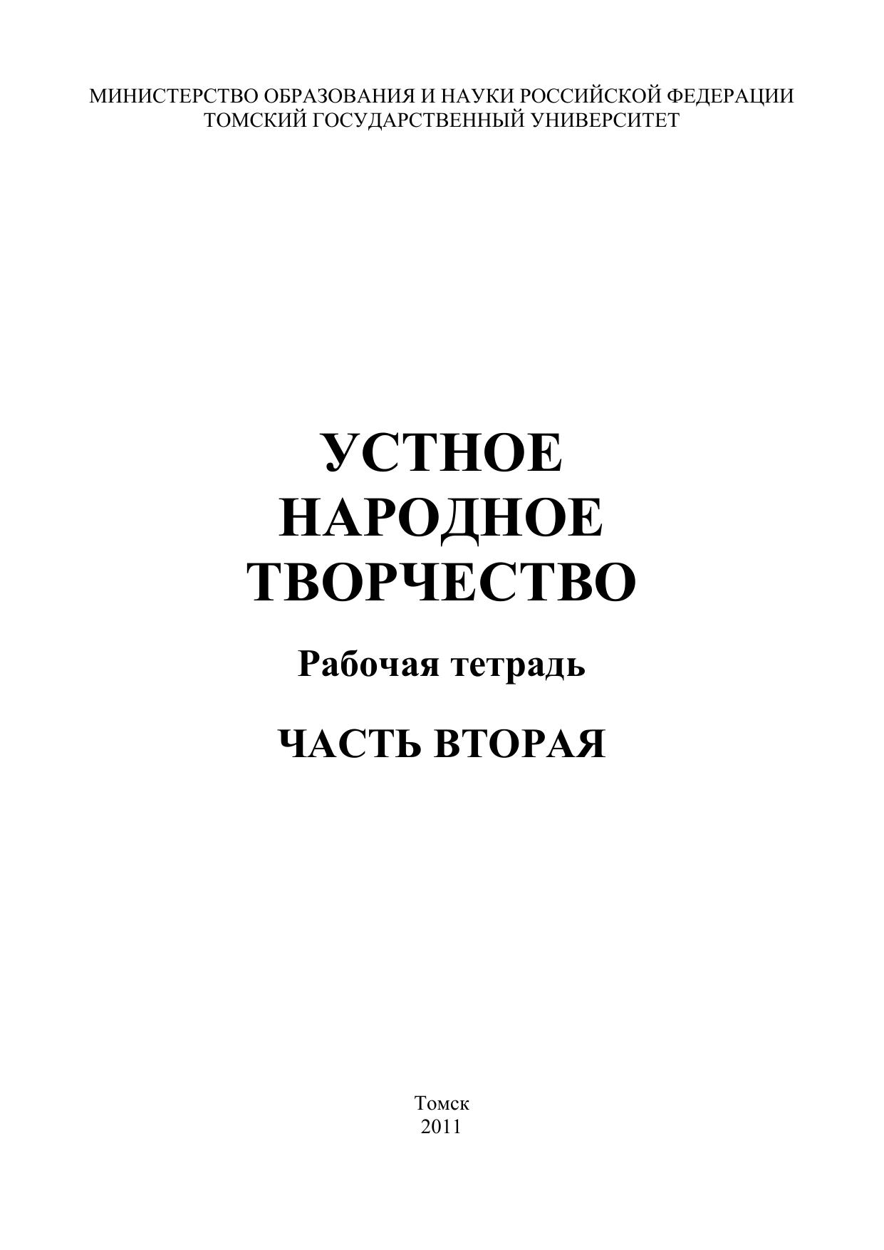 Рабочая тетрадь предназначена для организации обучающей деятельности студента на лекциях, практических занятиях, семинарах, коллоквиумах и при самостоятельной подготовке. Пособие состоит из четырех частей: 1-я часть раскрывает понятие и специфику фольклора как устного народного словесного творчества, его мировоззренческие основы, 2-я часть посвящена обрядовому фольклору, в 3-й и 4-й частях представлено необрядовое словесное творчество. Для студентов высших учебных заведений, обучающихся по направлению 032700 – «Филология», может использоваться также в условиях «открытого» комплекта во всех типах учебных заведений.