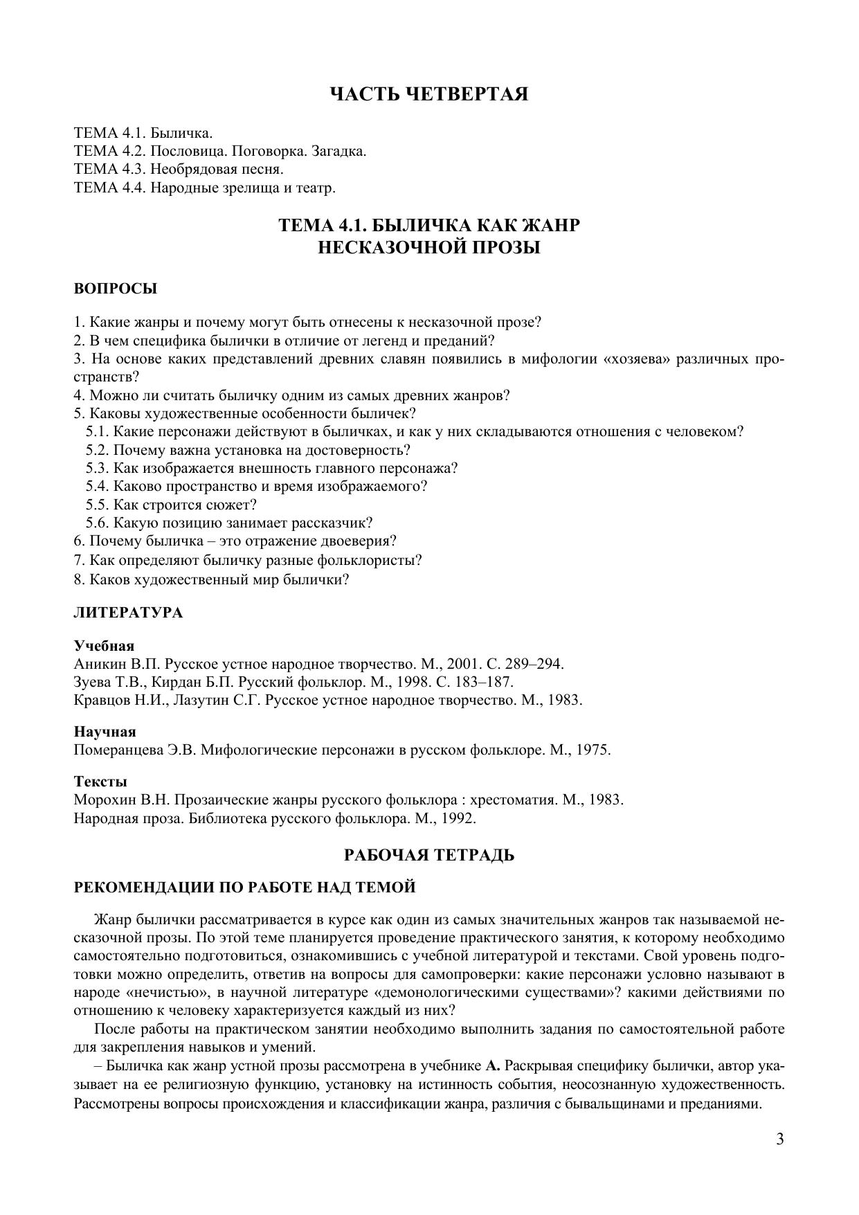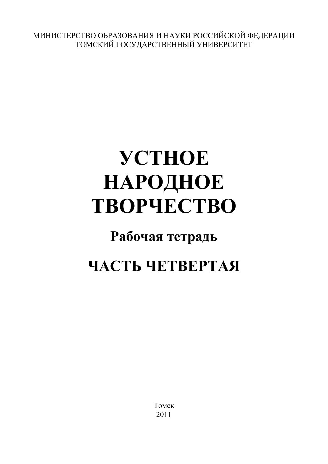 Устное народное творчество: рабочая тетрадь: в 4 ч. Ч. 4.