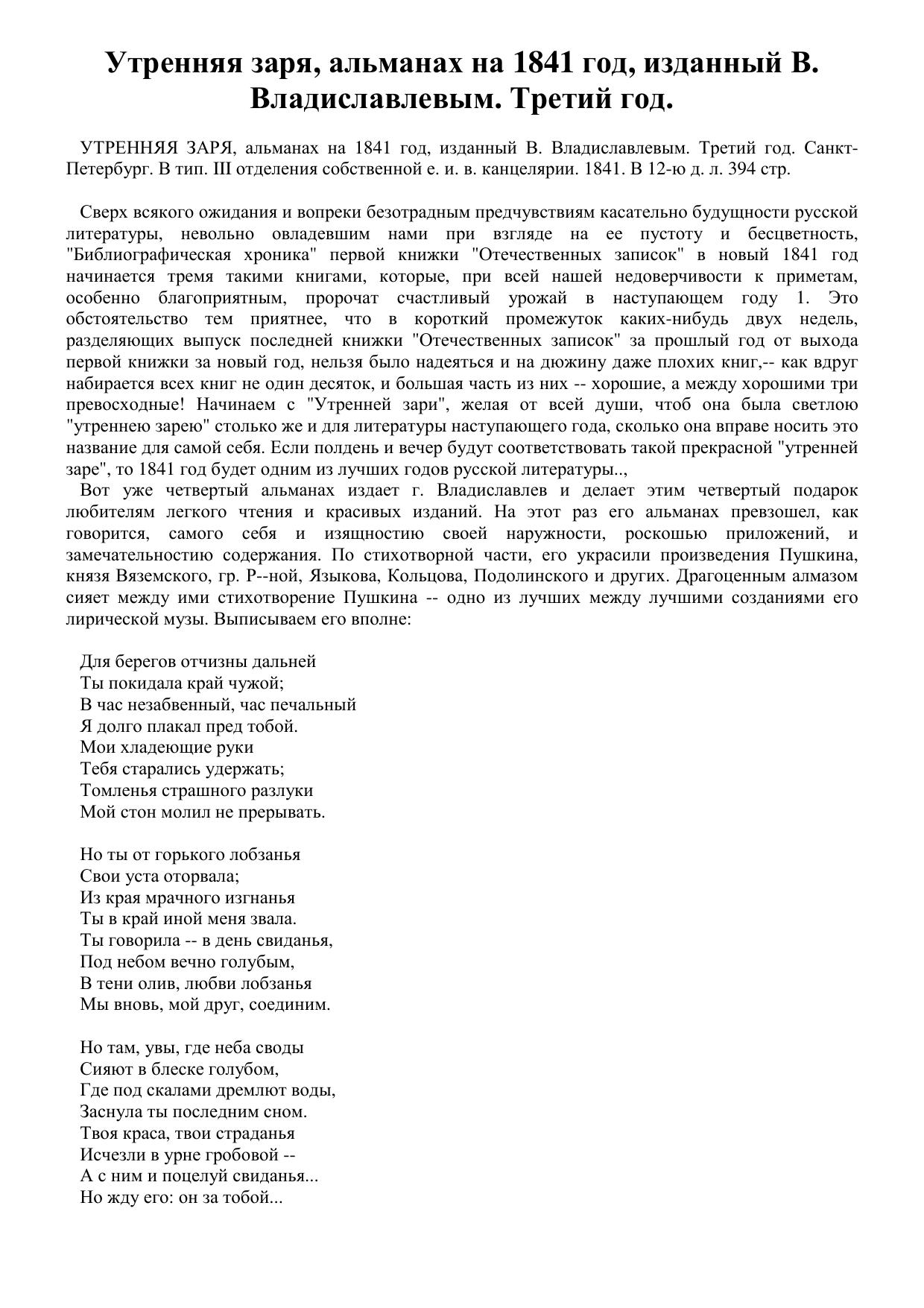 Утренняя заря, альманах на 1840 год, изданный В. Владиславлевым...
