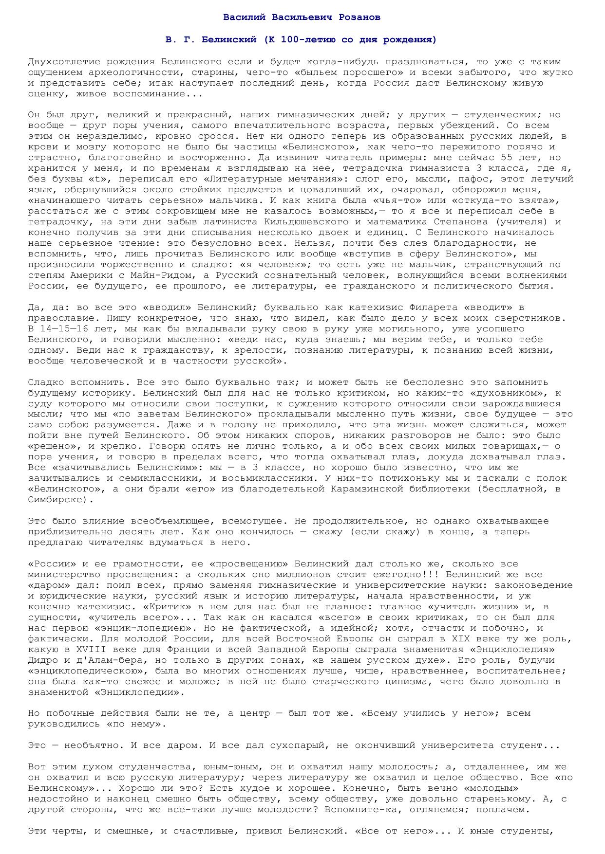 В.Г.Белинский (К 100-летию дня рождения)