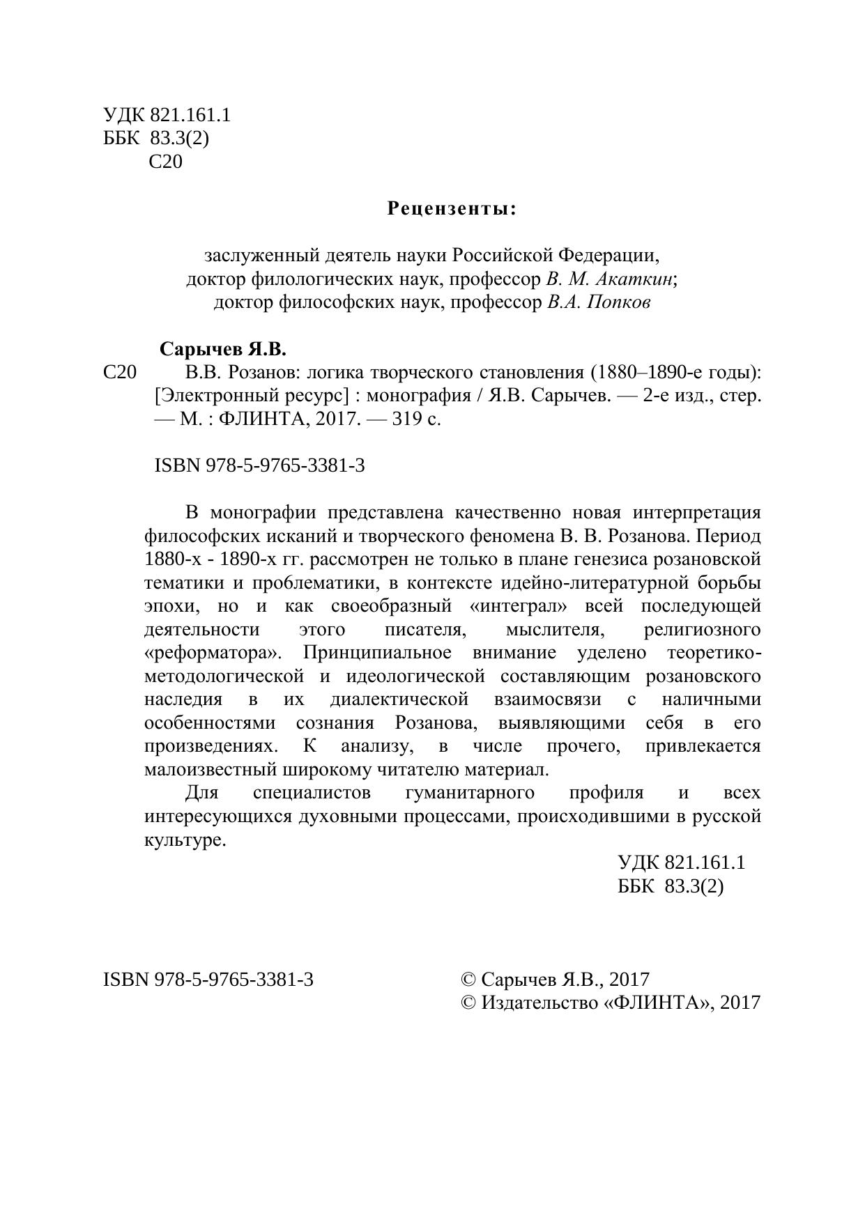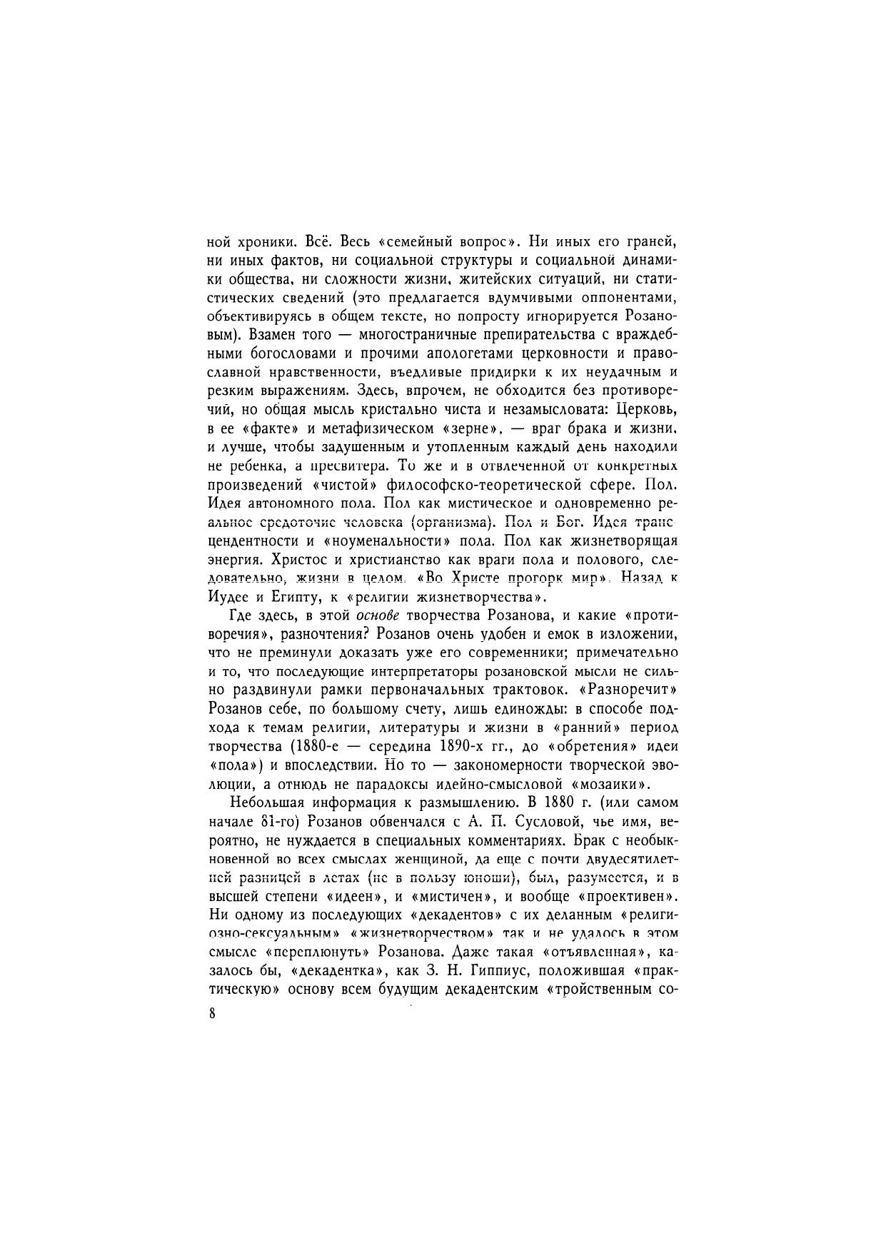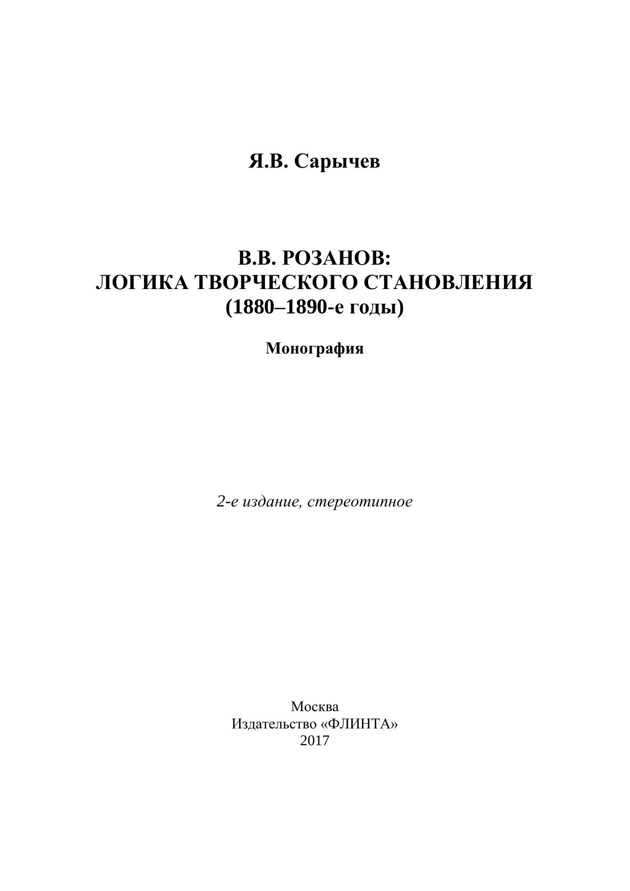 В монографии представлена качественно новая интерпретация философских исканий и творческого феномена В. В. Розанова. Период 1880-х - 1890-х гг. рассмотрен не только в плане генезиса розановской тематики и про6лематики, в контексте идейно-литературной борьбы эпохи, но и как своеобразный «интеграл» всей последующей деятельности этого писателя, мыслителя, религиозного «реформатора». Принципиальное внимание уделено теоретико-методологической и идеологической составляющим розановского наследия в их диалектической взаимосвязи с наличными особенностями сознания Розанова, выявляющими себя в его произведениях. К анализу, в числе прочего, привлекается малоизвестный широкому читателю материал. Для специалистов гуманитарного профиля и всех интересующихся духовными процессами, происходившими в русской культуре.