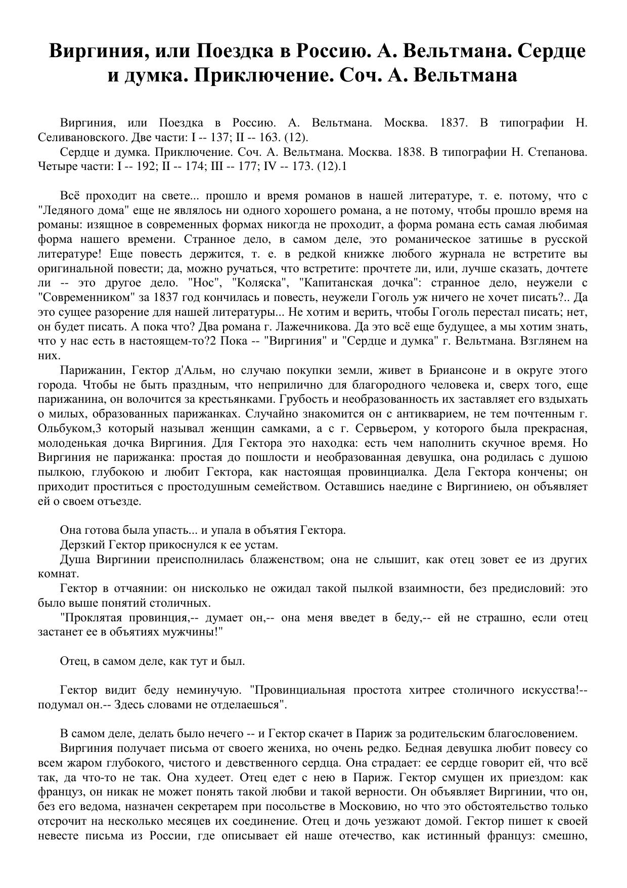 Виргиния, или Поездка в Россию. А. Вельтмана. Сердце и думка. Приключение. Соч. А. Вельтмана