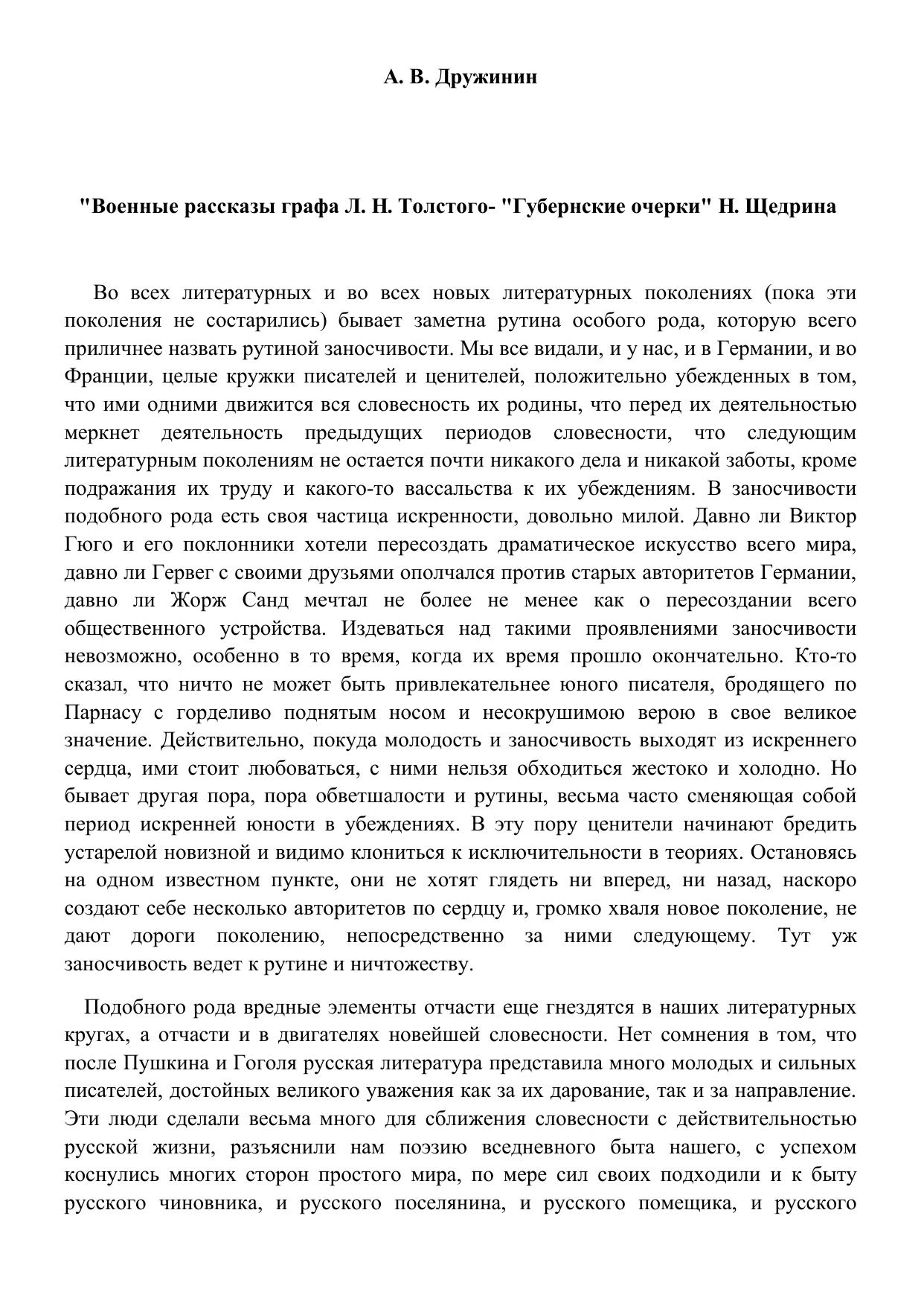 Военные рассказы графа Л.Н. Толстого, Губернские очерки Н. Щедрина