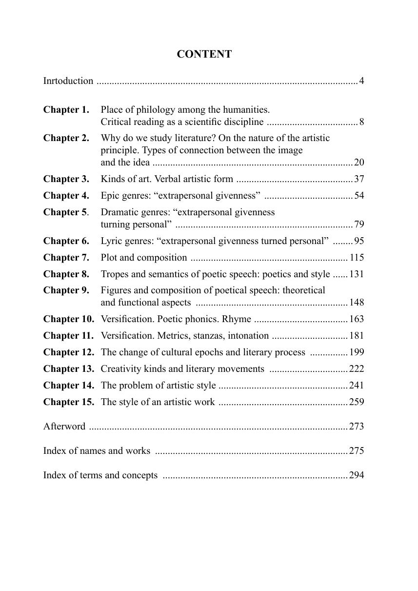 The Study Guide will be useful for students-philologists of classical and teacher training universities, everyone interested in literature and the problems of its understanding, analysis and interpretation.