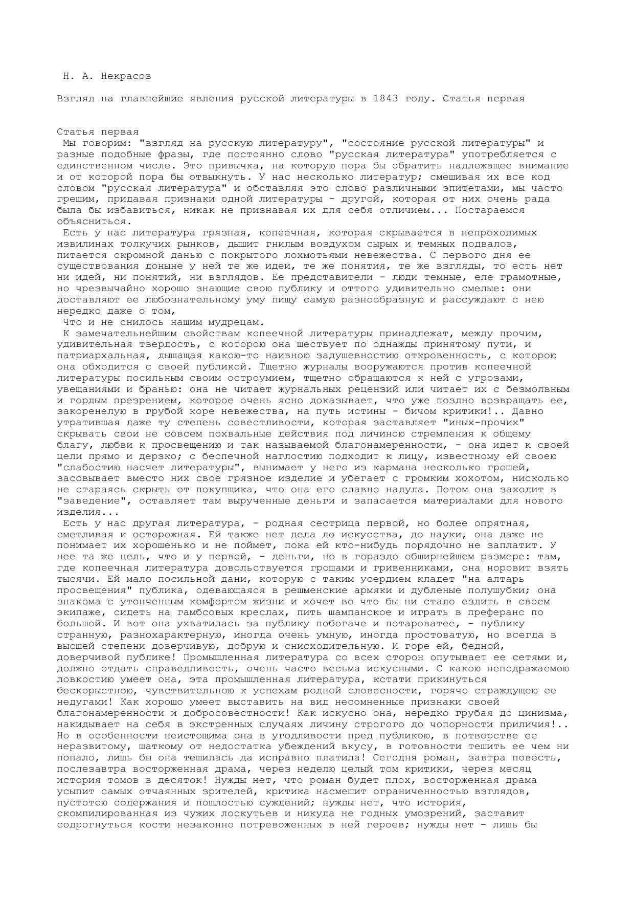Взгляд на главнейшие явления русской литературы в году. Статья первая