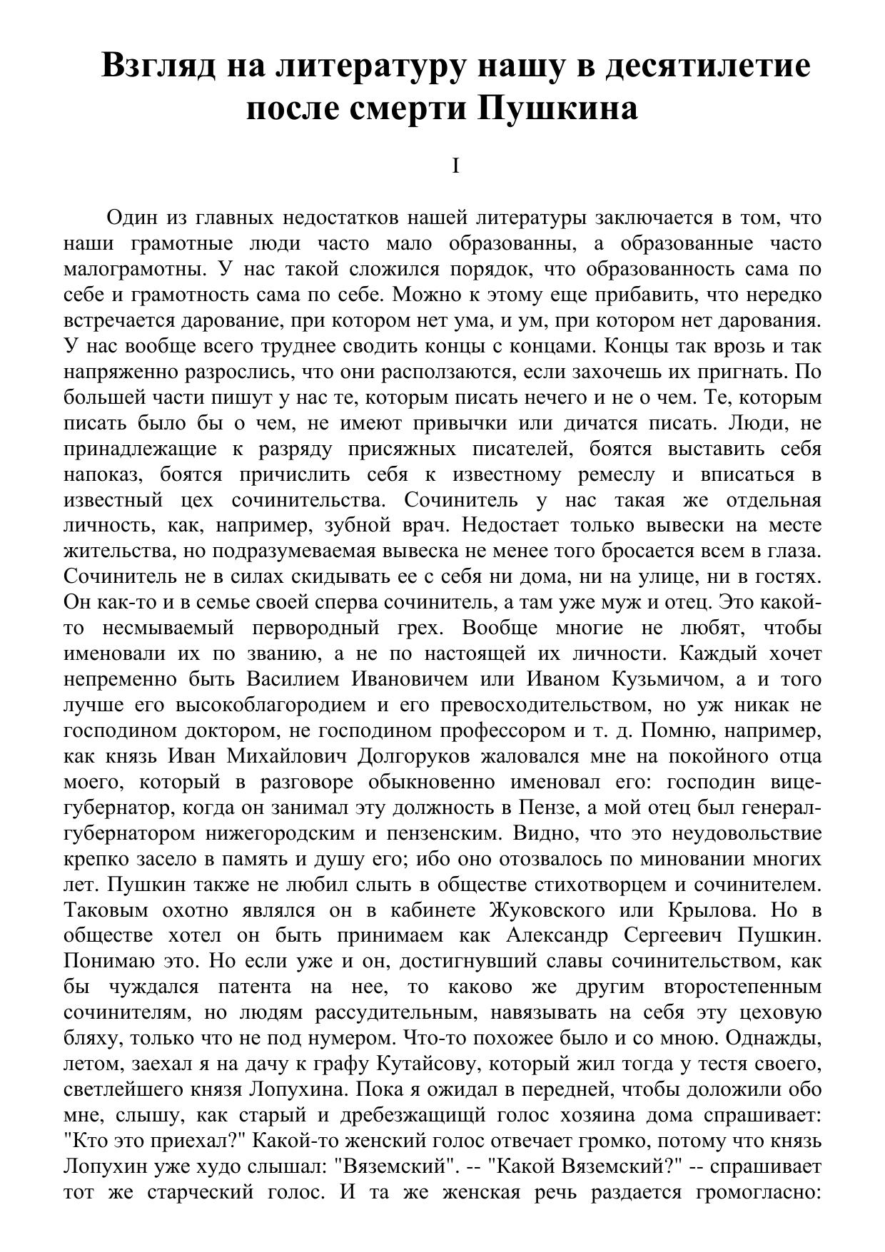 Взгляд на литературу нашу в десятилетие после смерти Пушкина