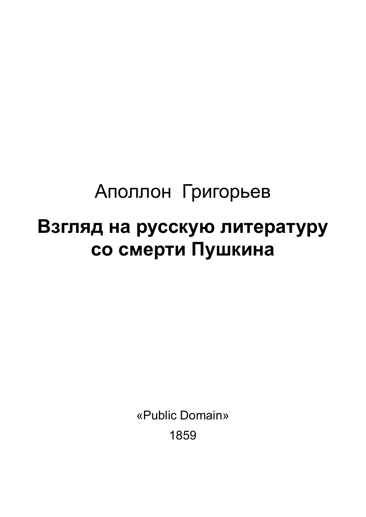 Взгляд на русскую литературу со смерти Пушкина