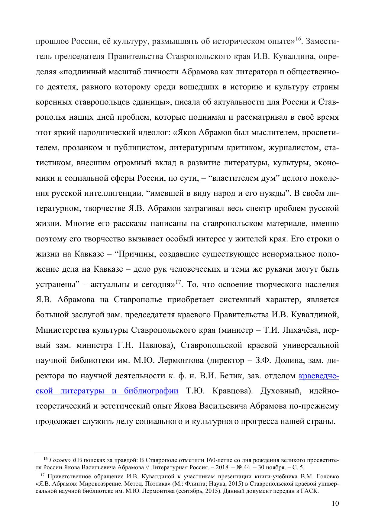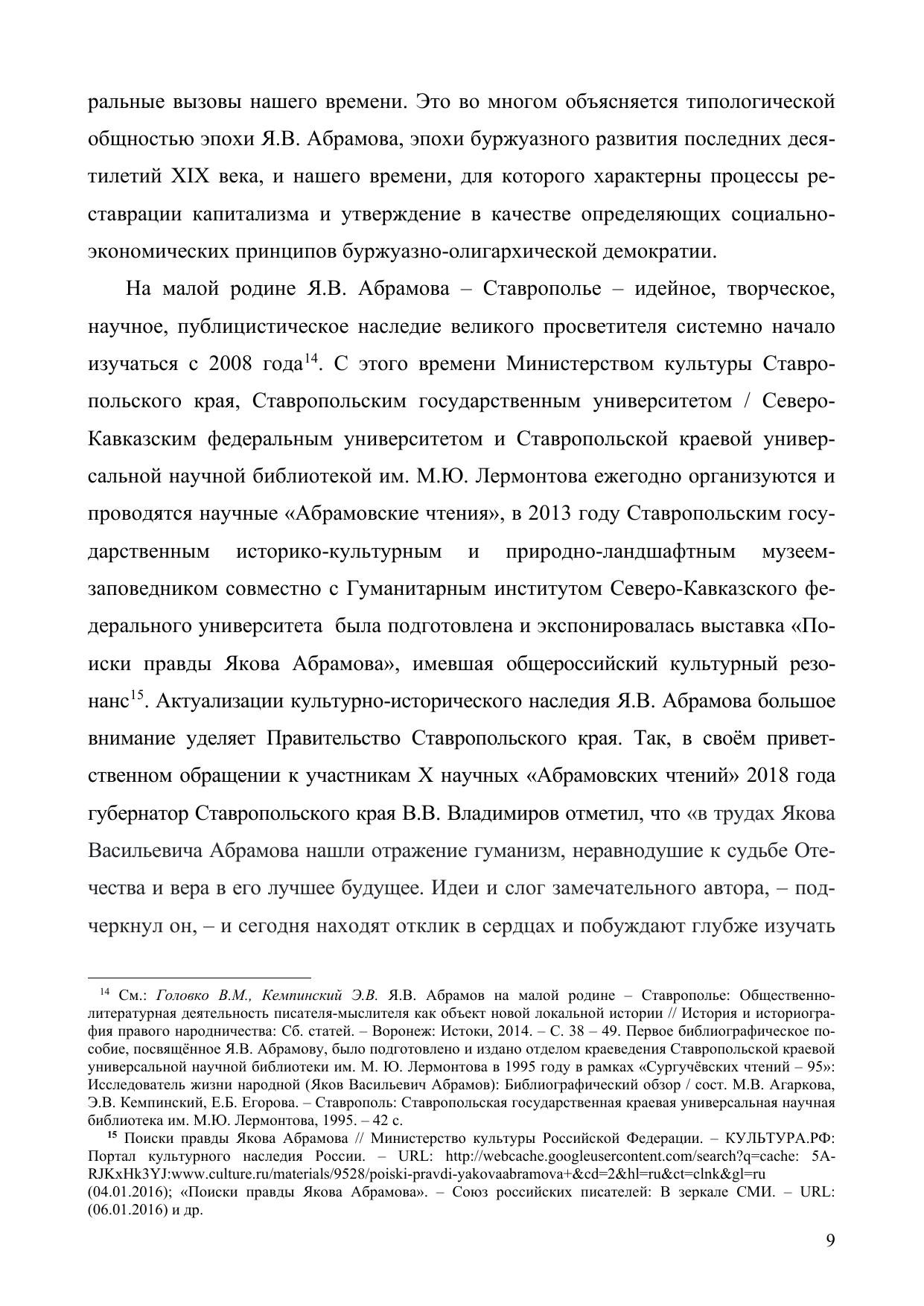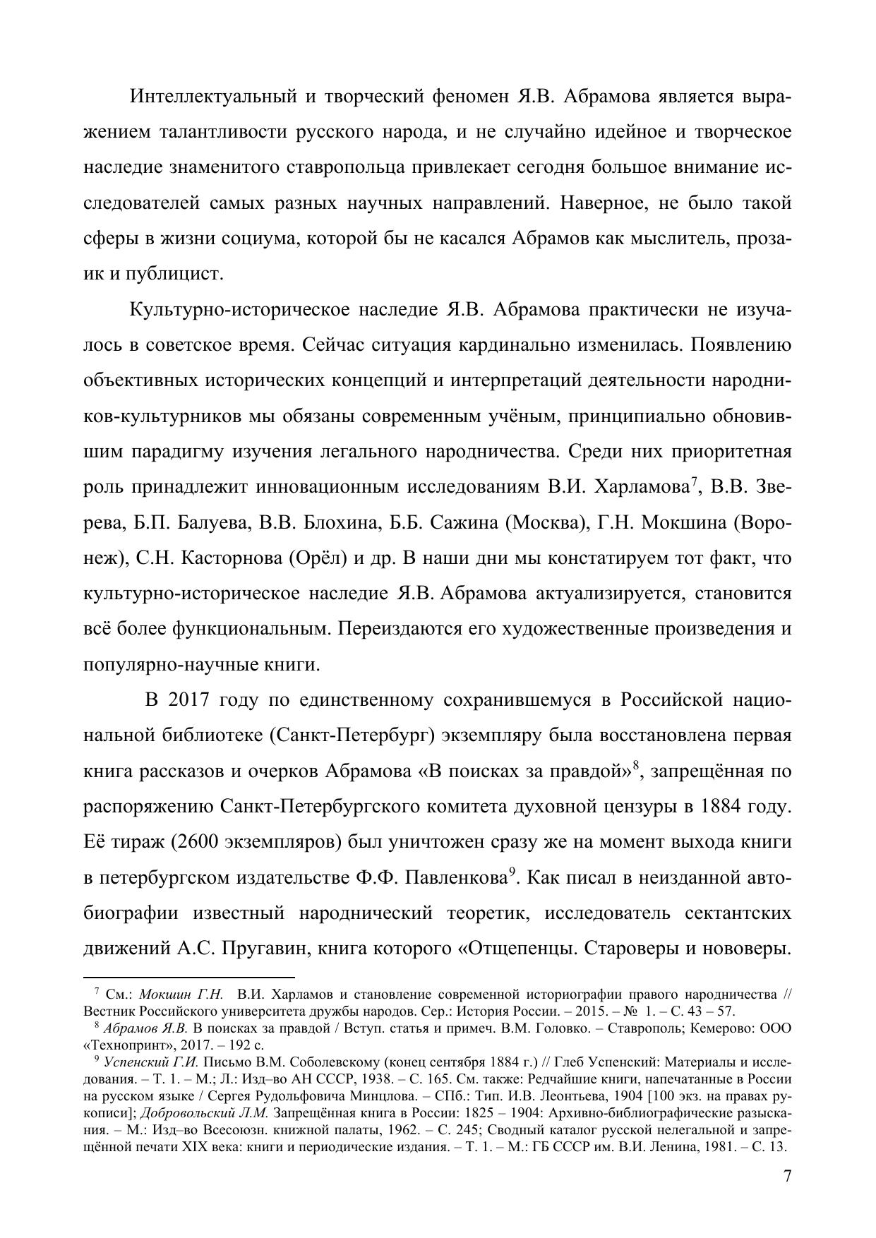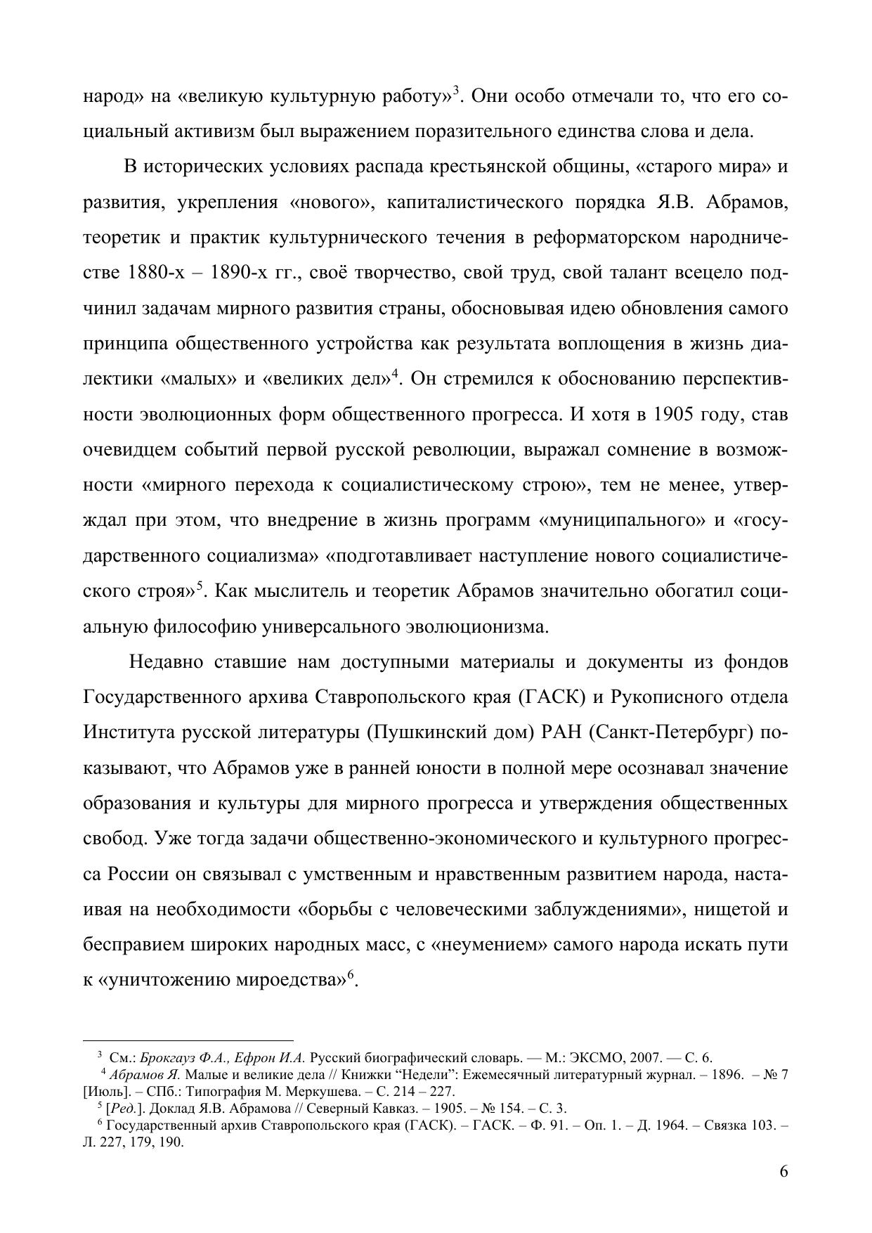 Коллективная монография посвящена изучению мировоззрения, общественно-литературной деятельности и культурно-исторического наследия великого просветителя России, выдающегося теоретика и практика культурнического течения в реформаторском (легальном) народничестве 1880-х – 1890-х годов Якова Васильевича Абрамова (1858 – 1906). Публикуются ранние литературно-художественные произведения писателя-мыслителя, сохранившиеся в фонде Государственного архива Ставропольского края. Социально-философские, гражданские, политические, нравственно-эстетические, литературные позиции Я.В. Абрамова рассматриваются в историко-функциональном освещении, в парадигме истории легального народничества последних десятилетий ХIХ – начала ХХ века, в контексте исторического движения и развития общественной мысли в России, в аспекте диалога народнического идеолога с концепциями социокультурного прогресса его предшественников и современников. Публикуемые исследования дают представление об актуальности идей Я.В. Абрамова, о том, в какой высокой мере они отвечают на вызовы нового времени.