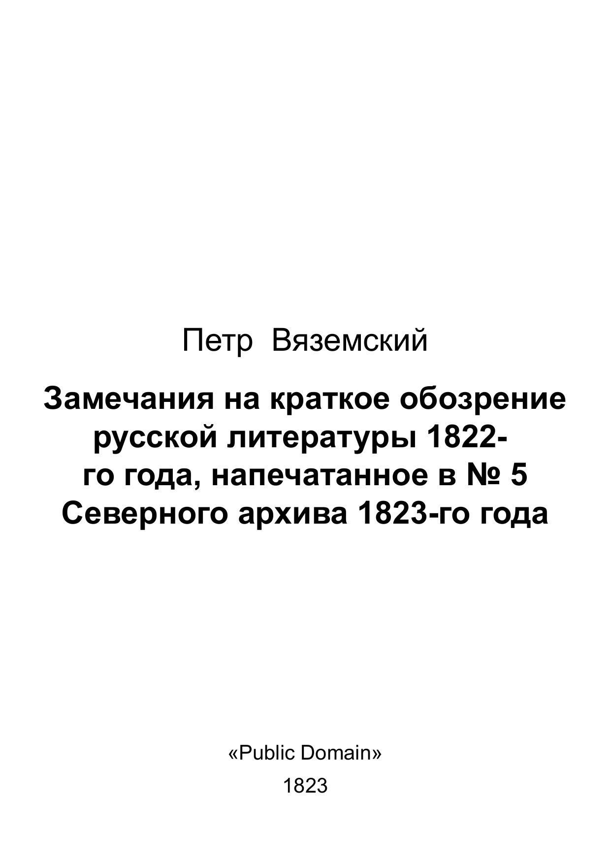 Замечания на краткое обозрение русской литературы 1822-го года, напечатанное в № 5 Северного архива 1823-го года