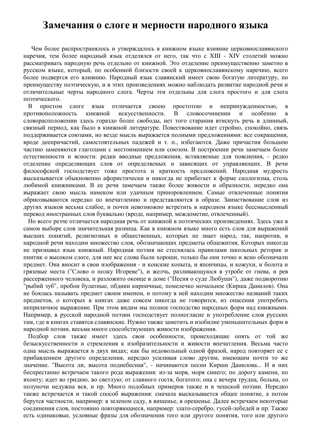 Замечания о слоге и мерности народного языка