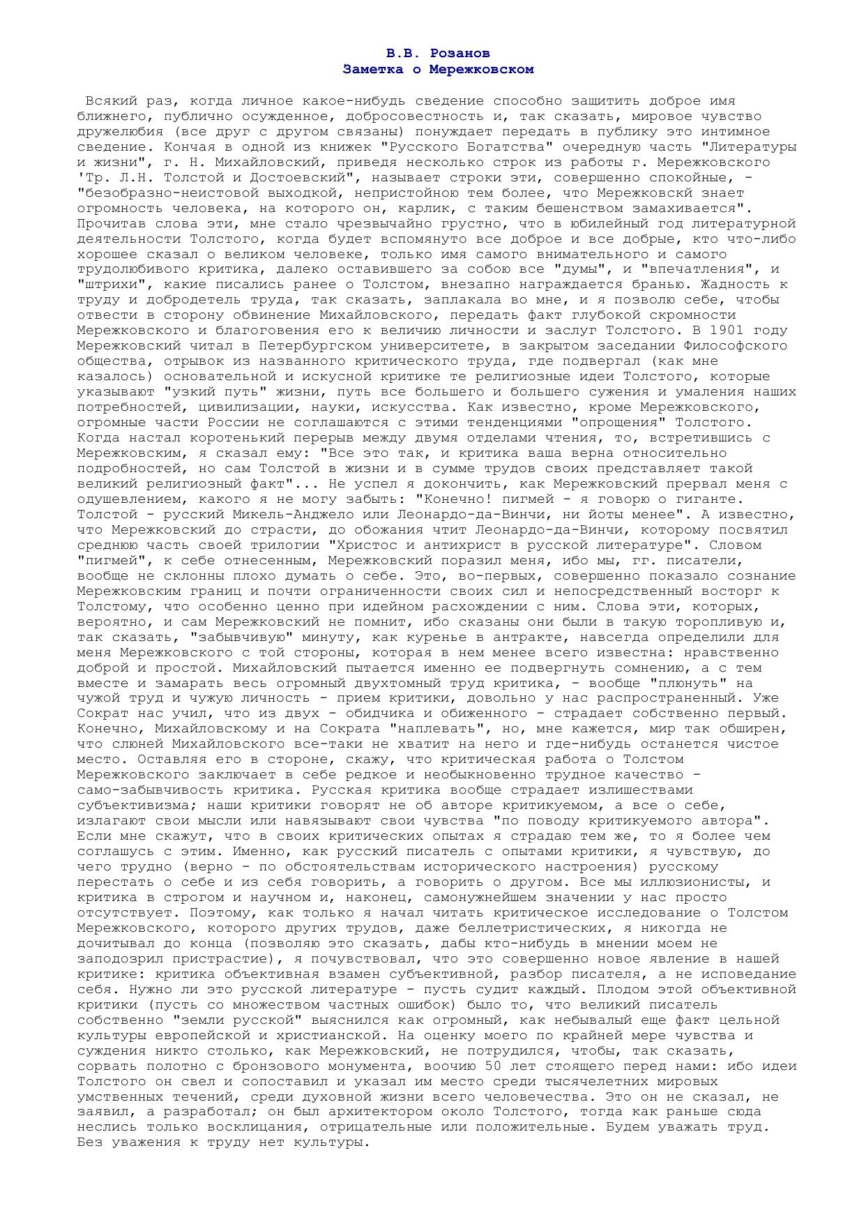 Заметка о Мережковском