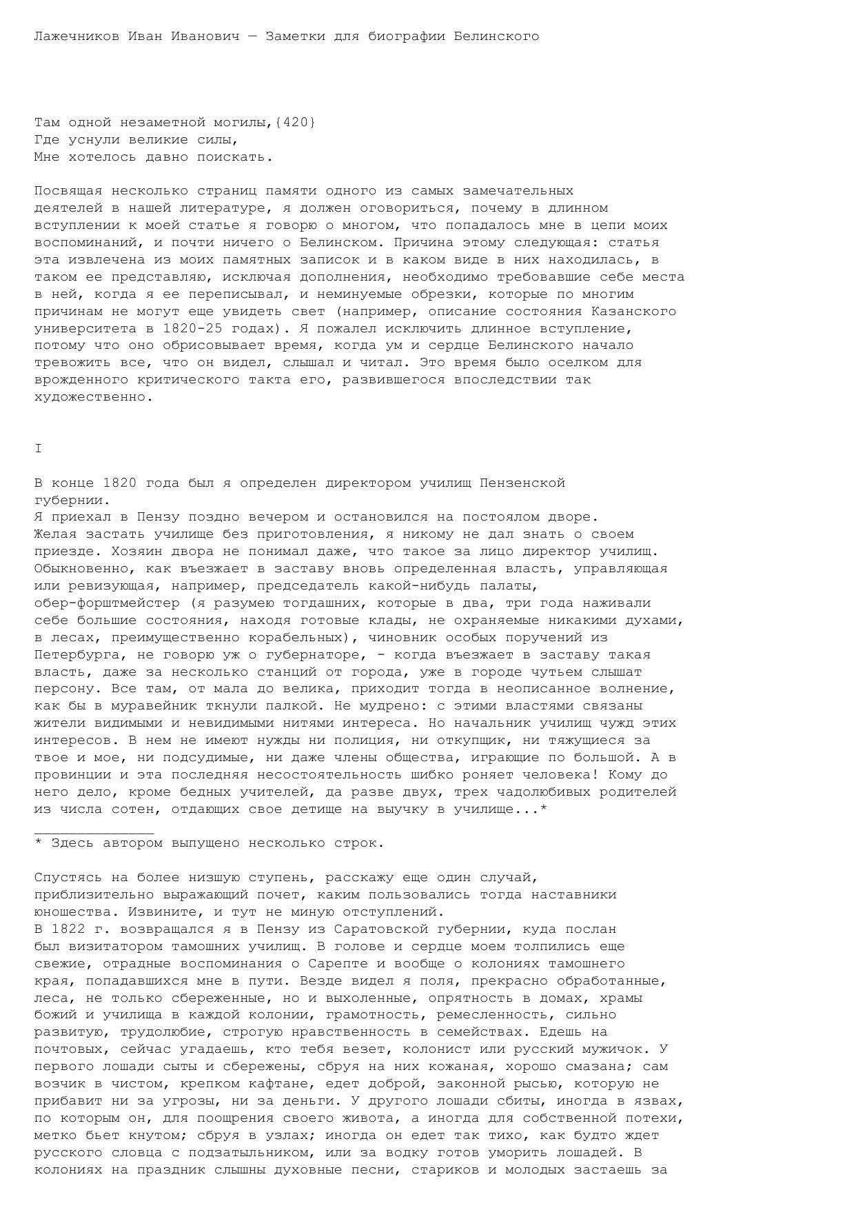 Заметки для биографии Белинского