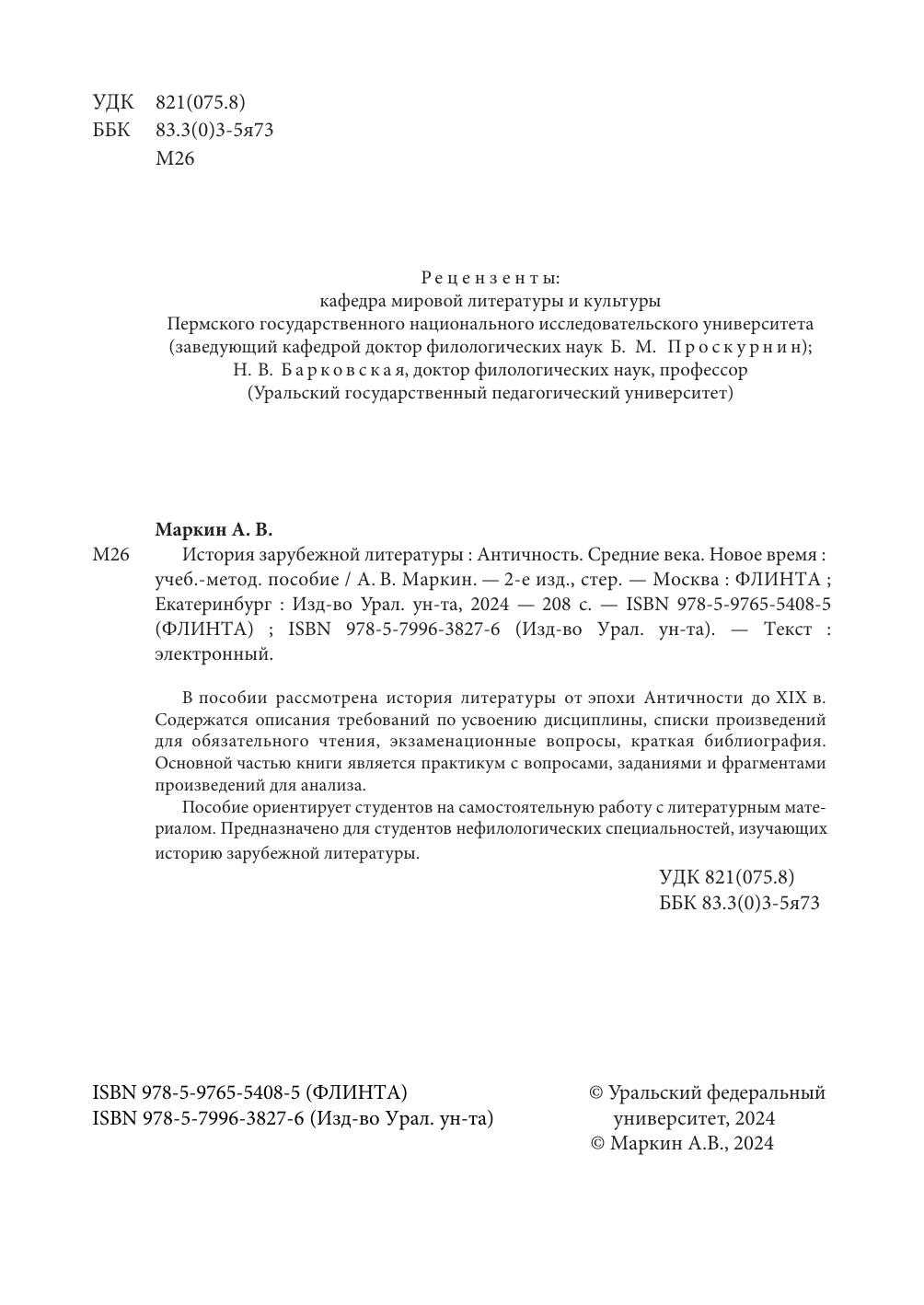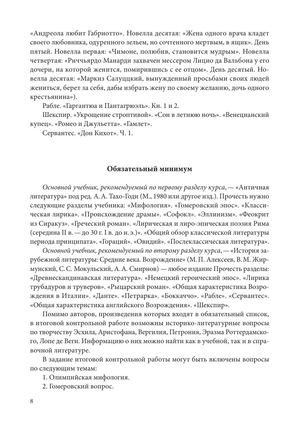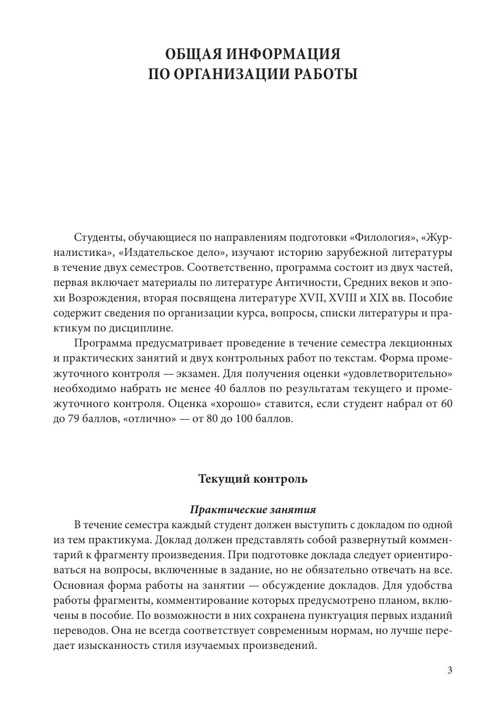 В пособии рассмотрена история литературы от эпохи Античности до XIX в. Содержатся описания требований по усвоению дисциплины, списки произведений для обязательного чтения, экзаменационные вопросы, краткая библиография. Основной частью книги является практикум с вопросами, заданиями и фрагментами произведений для анализа. Пособие ориентирует студентов на самостоятельную работу с литературным материалом. Предназначено для студентов нефилологических специальностей, изучающих историю зарубежной литературы.