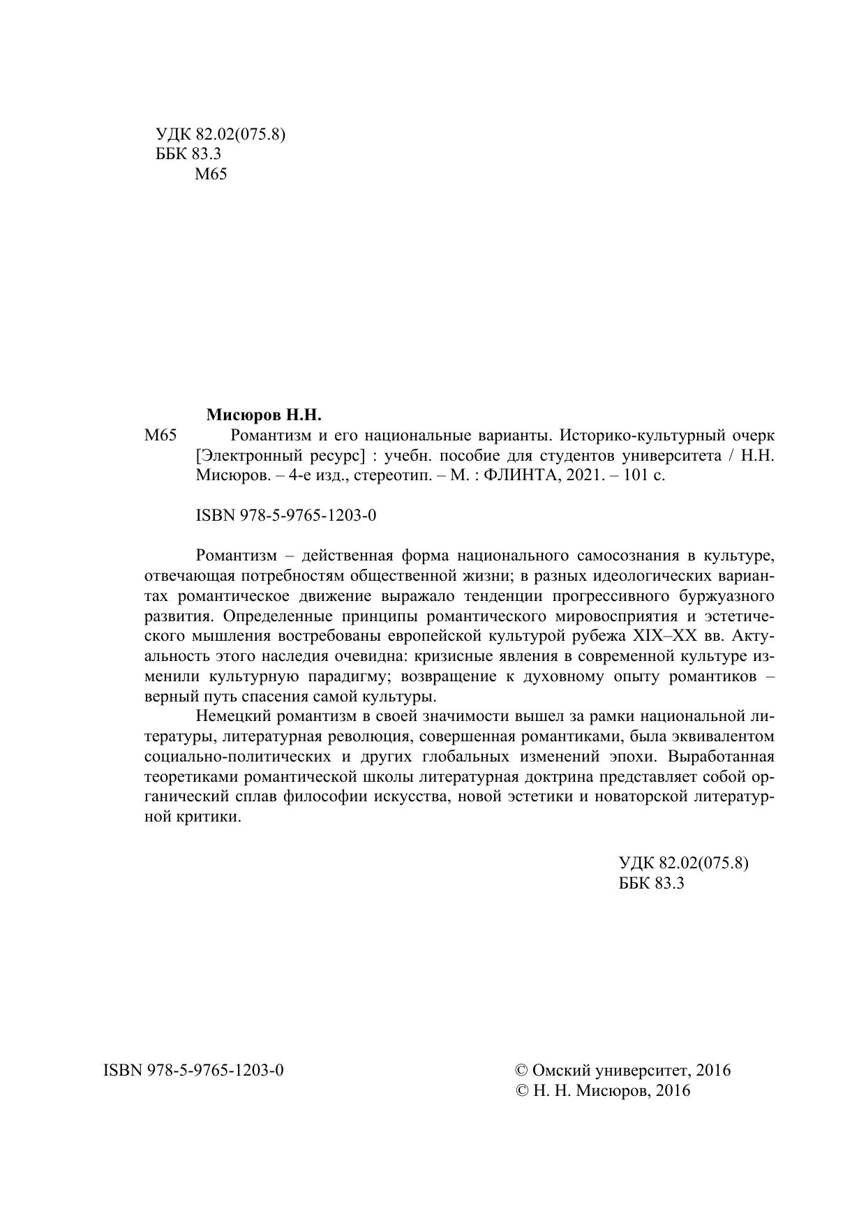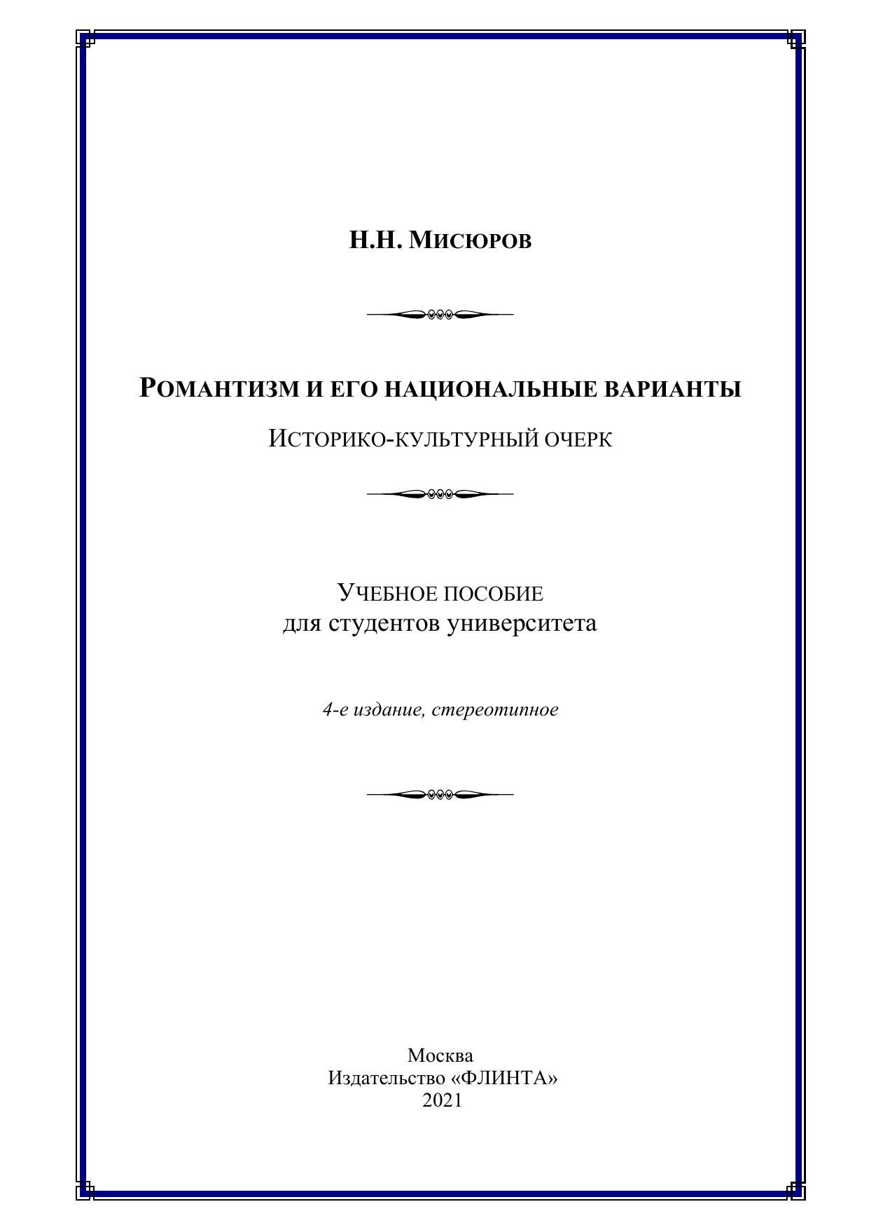 Романтизм и его национальные варианты. Историко-культурный очерк