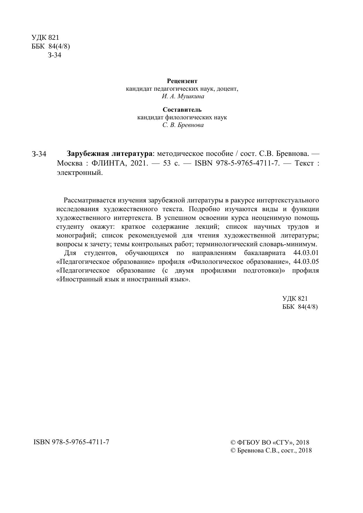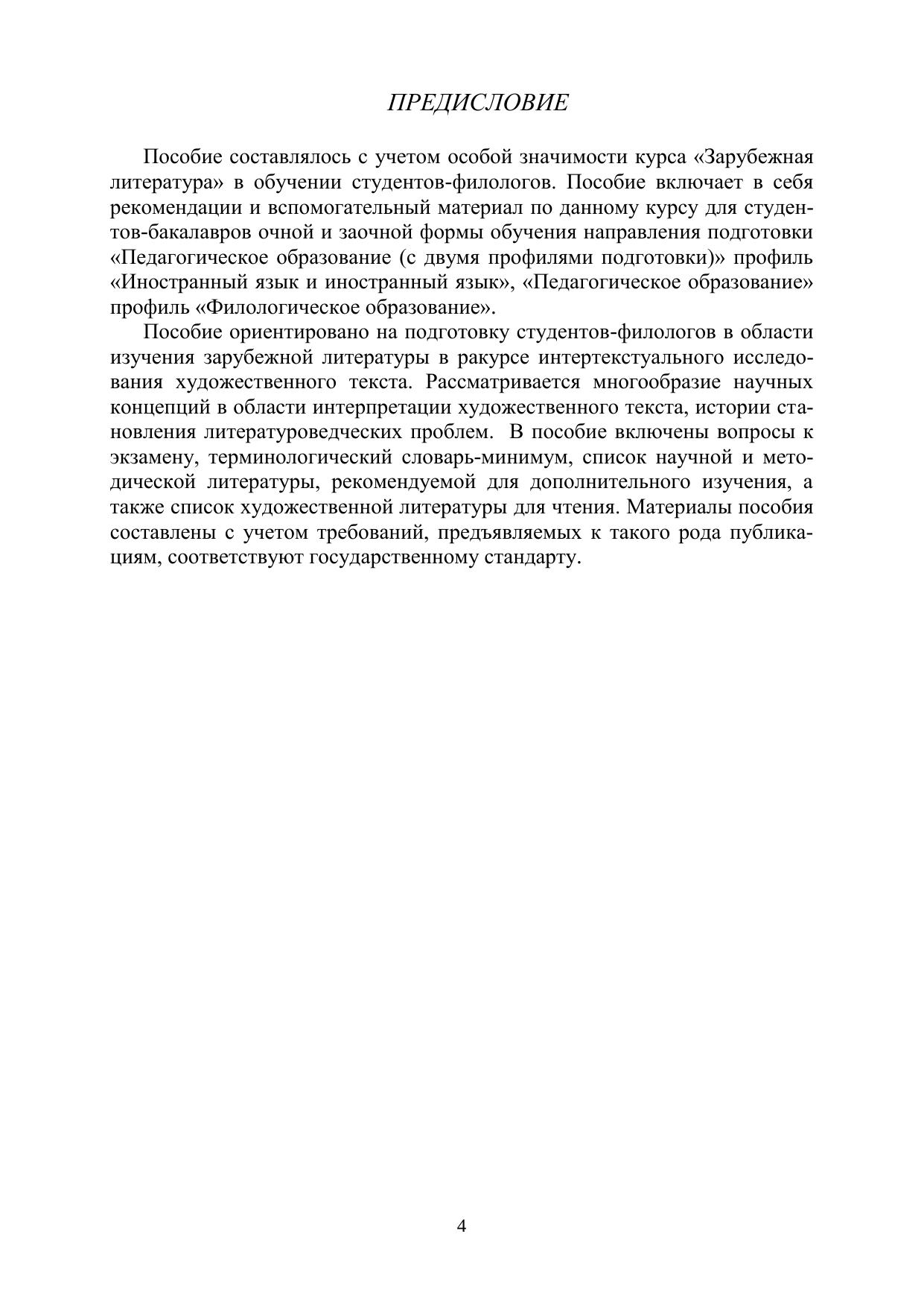 Рассматривается изучения зарубежной литературы в ракурсе интертекстуального исследования художественного текста. Подробно изучаются виды и функции художественного интертекста. В успешном освоении курса неоценимую помощь студенту окажут: краткое содержание лекций; список научных трудов и монографий; список рекомендуемой для чтения художественной литературы; вопросы к зачету; темы контрольных работ; терминологический словарь-минимум.