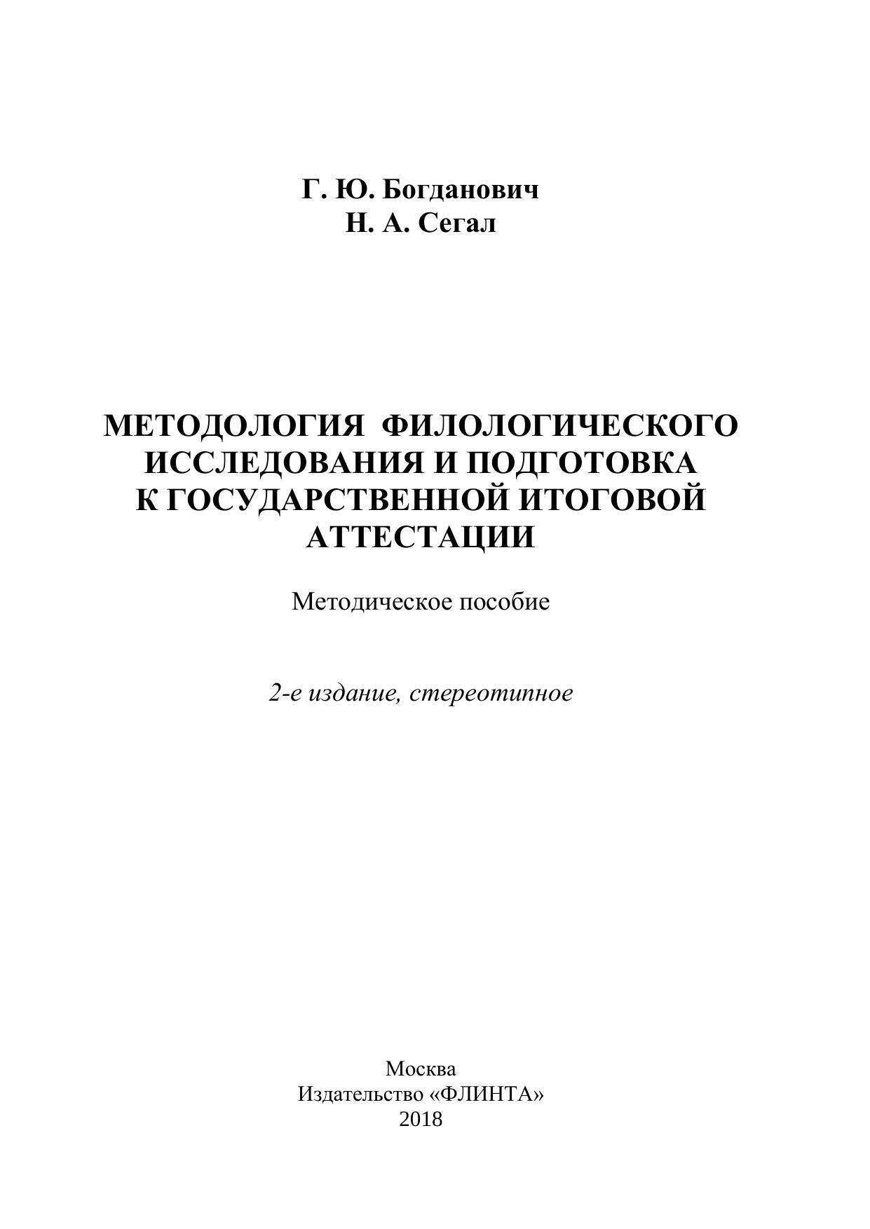 Методология филологического исследования и подготовка к государственной итоговой аттестации