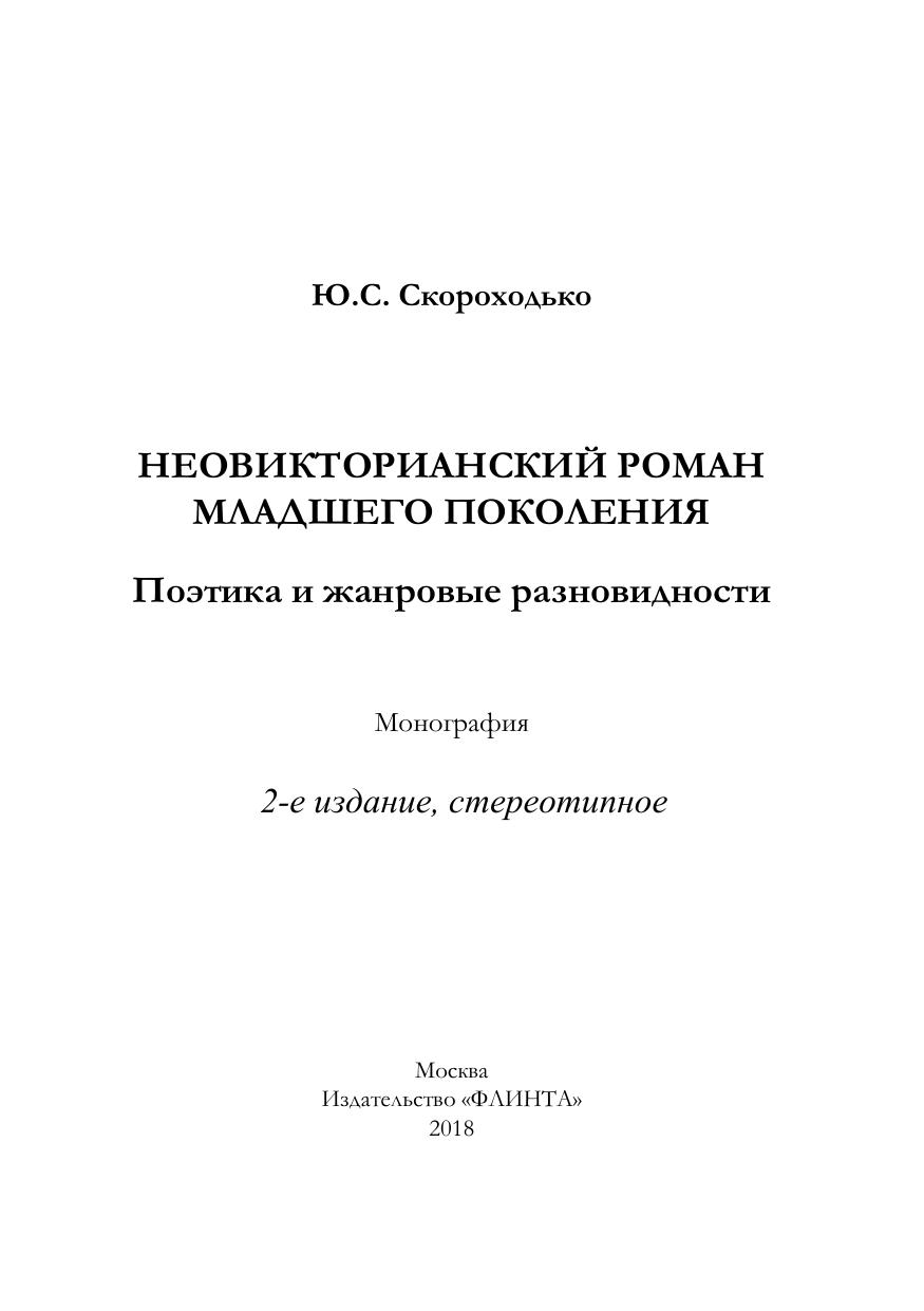 Неовикторианский роман младшего поколения: поэтика и жанровые разновидности: монография