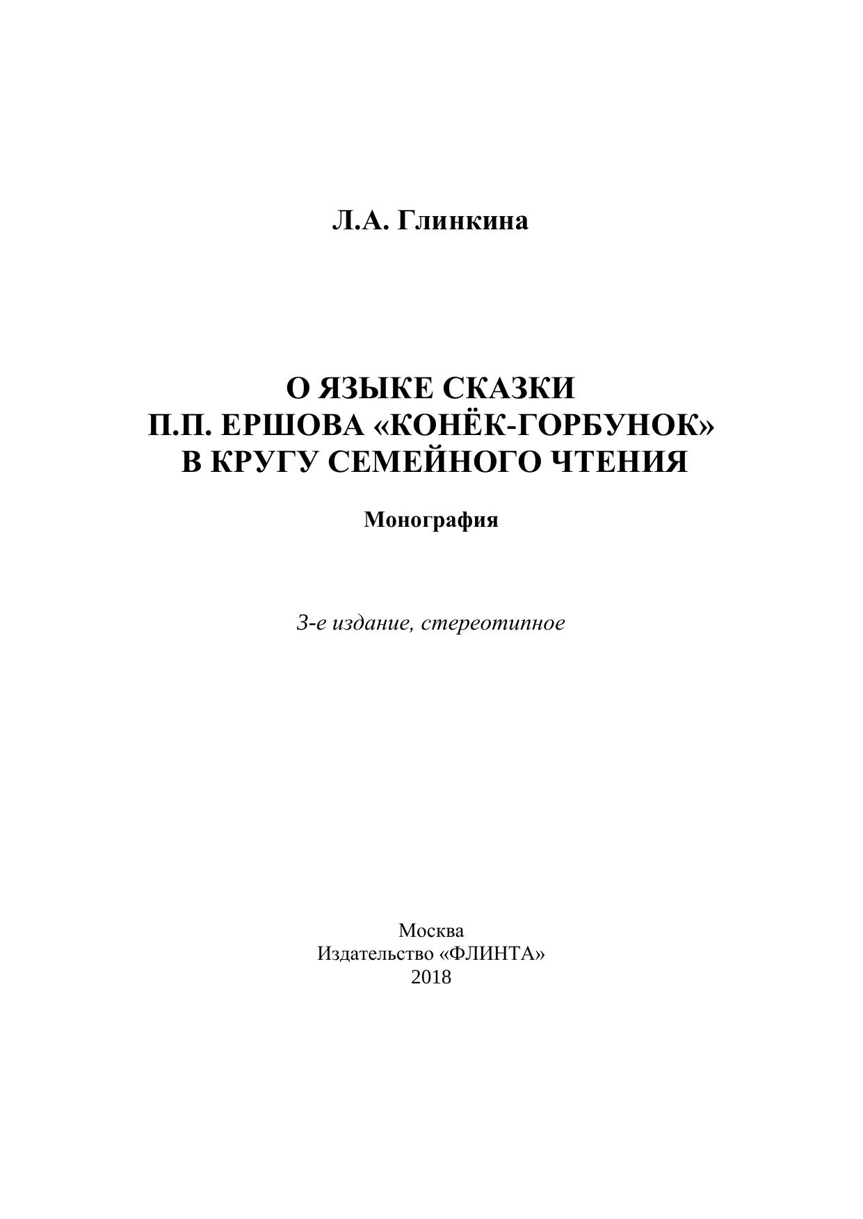О языке сказки П.П. Ершова "Конёк-горбунок" в кругу семейного чтения