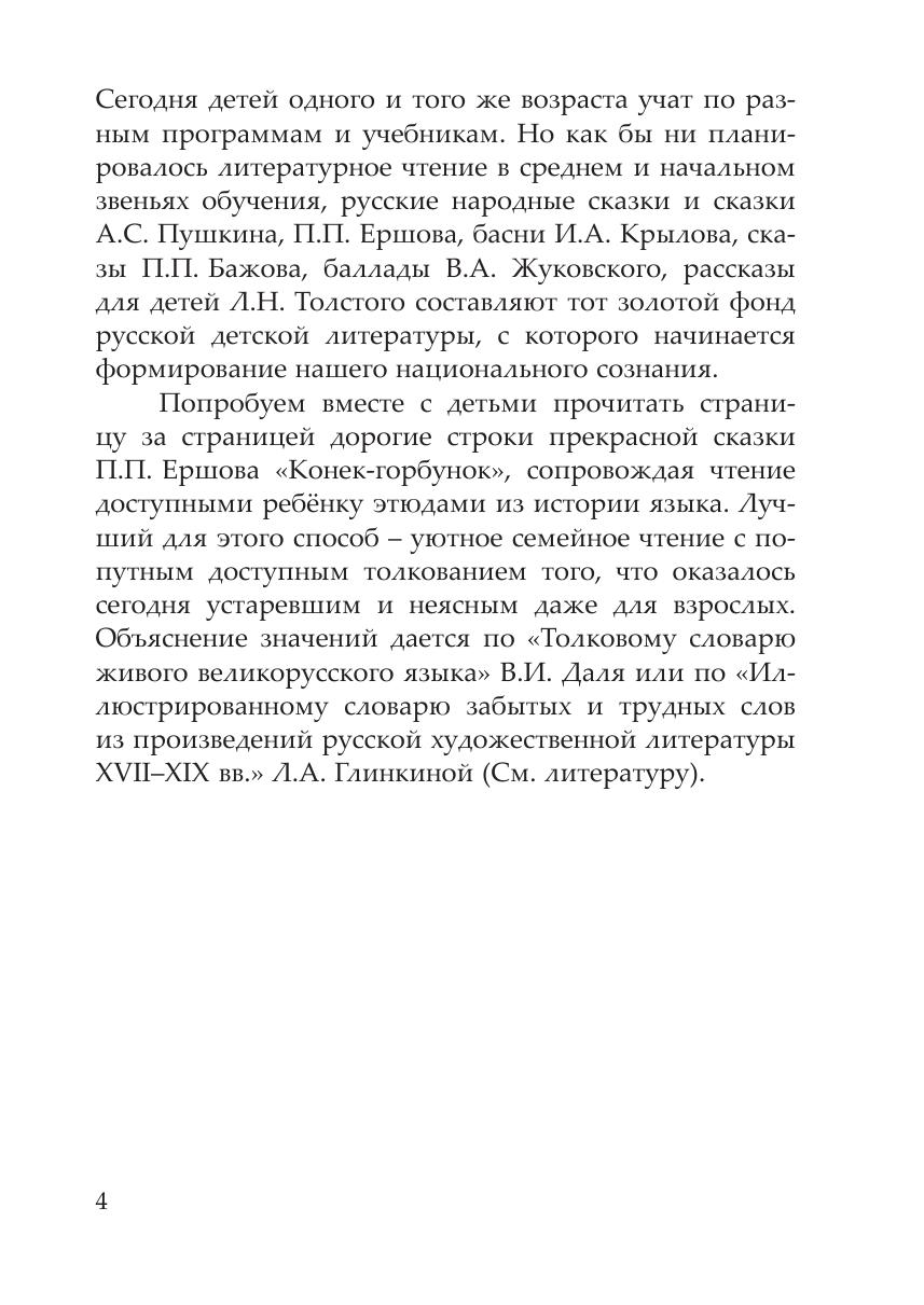 Краткий историко-лингвистический комментарий более 100 устаревших слов и словосочетаний из текста замечательной сказки П.П. Ершова «Конёк-Горбунок» адресован одновременно взрослым наставникам – родителям, педагогам и детям. Его цель – устранить недопонимание текста, оживить образы прошлого, потускневшие или забытые за два столетия.
