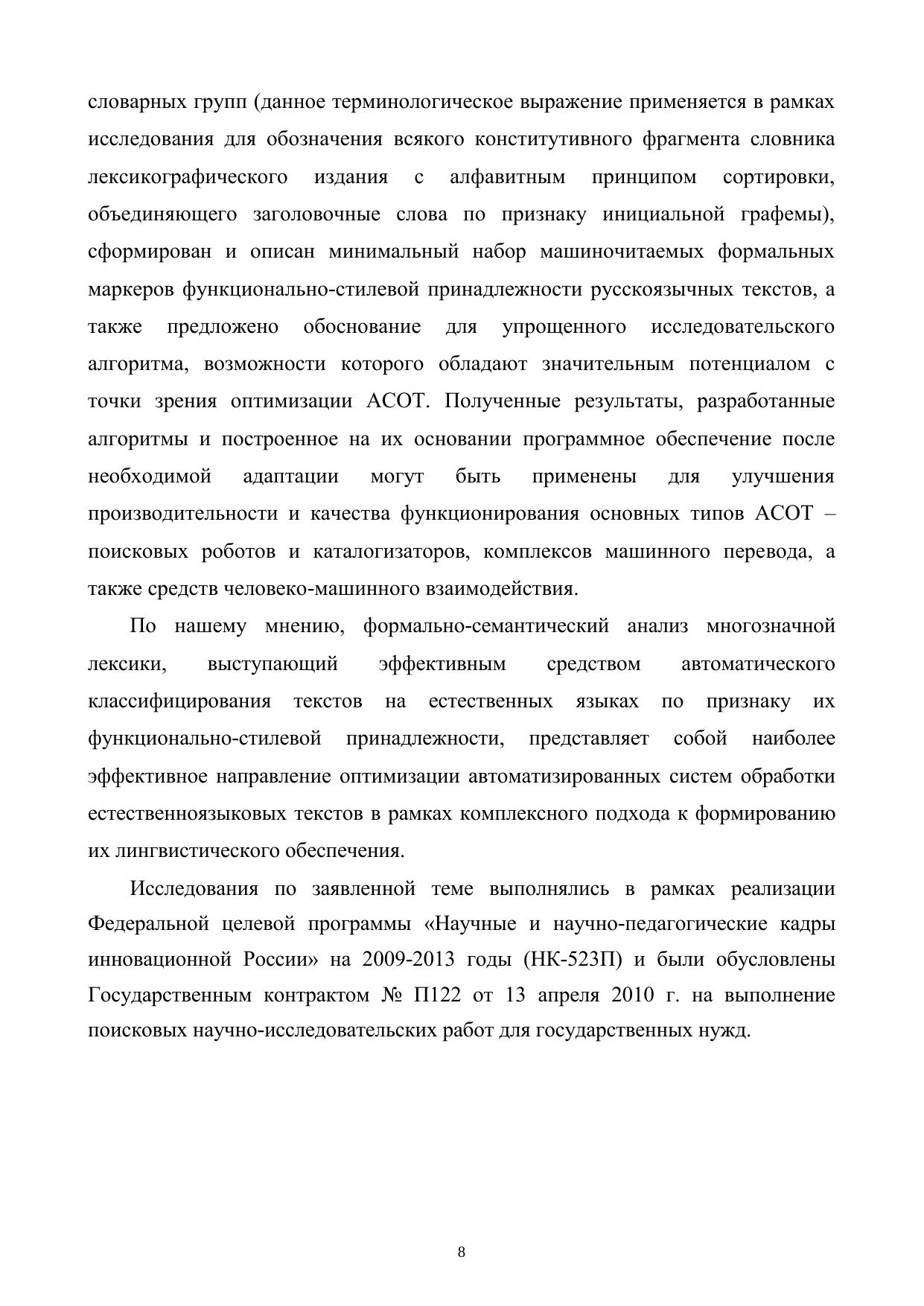 В исследовании рассматривается один из перспективных способов практического использования данных о семантическом потенциале текста на русском языке – специфическом интегральном показателе, отражающем меру его смысловой неопределенности с точки зрения автоматизированного анализатора. Оценивание данного показателя посредством формально-семантического анализа многозначной лексики применено в интересах разработки минимизированного алгоритма автоматической классификации русскоязычных текстов по признаку их функционально-стилевой отнесенности, что, в свою очередь, позволяет в перспективе обеспечить оптимизацию производительности и эффективности основных разновидностей автоматизированных систем обработки текстов - средств понимания естественного языка, поисковых роботов и каталогизаторов, а также систем машинного перевода.