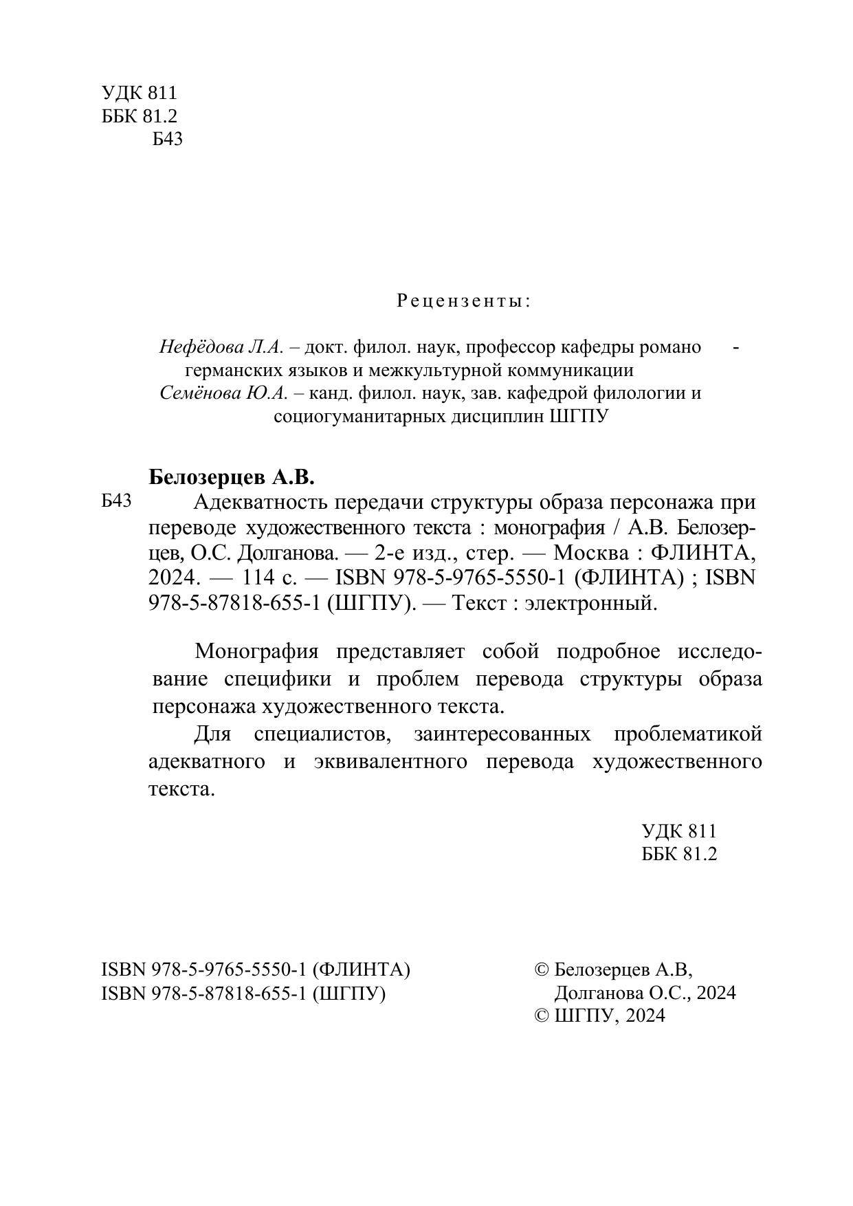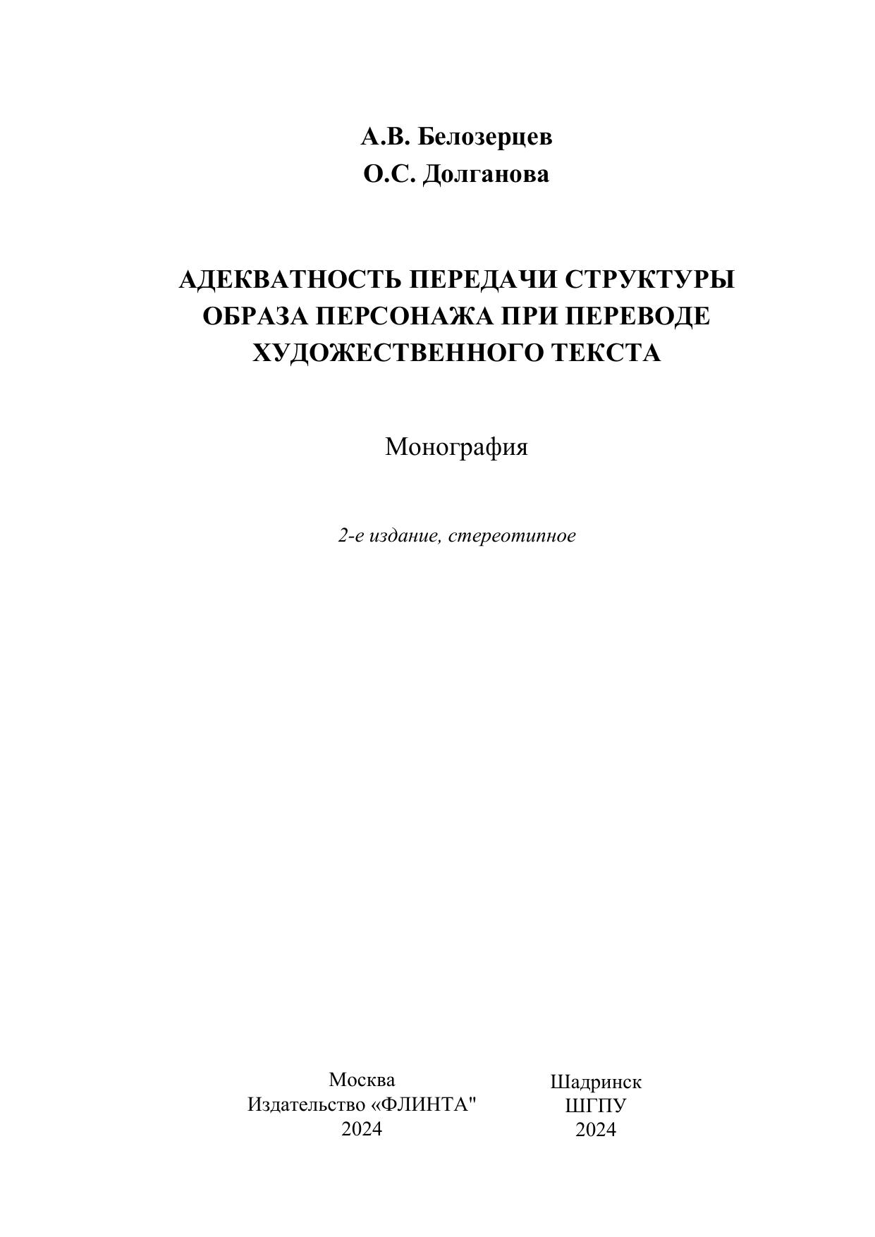 Монография представляет собой подробное исследование специфики и проблем перевода структуры образа персонажа художественного текста.
