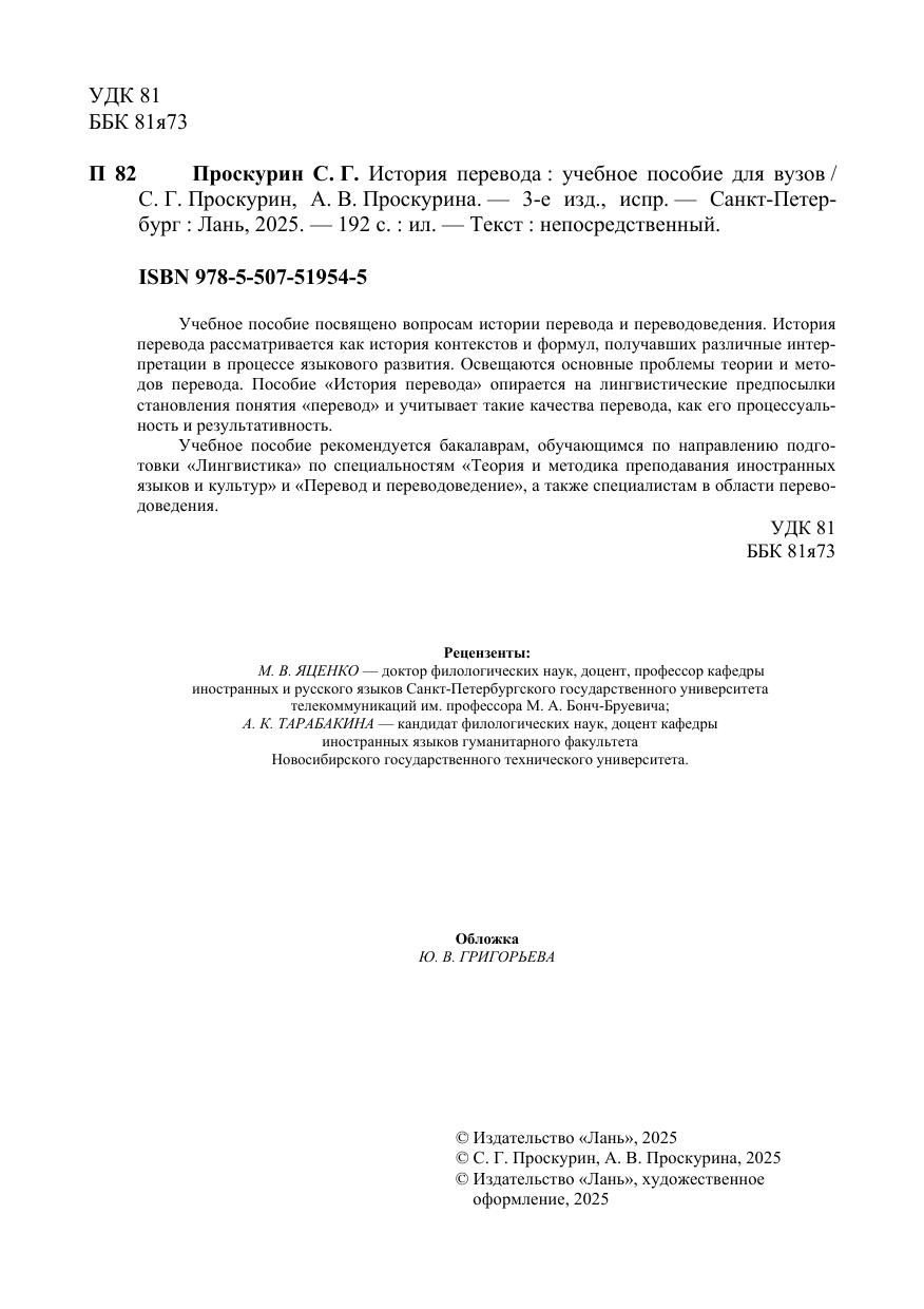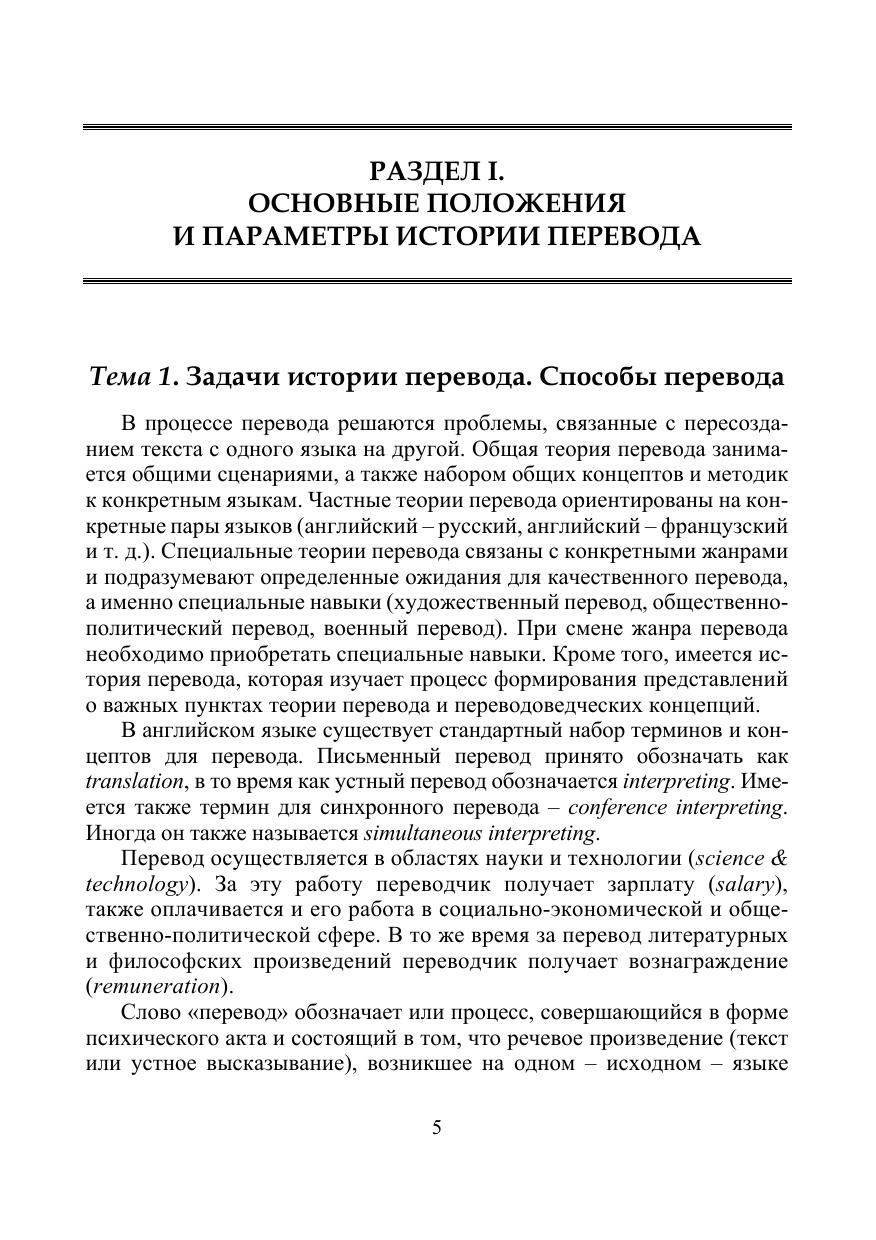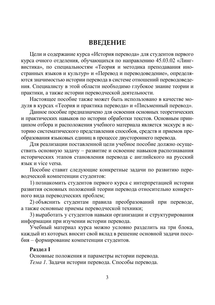 Учебное пособие посвящено вопросам истории перевода и переводоведения. История перевода рассматривается как история контекстов и формул, получавших различные интерпретации в процессе языкового развития. Освещаются основные проблемы теории и методов перевода. Пособие «История перевода» опирается на лингвистические предпосылки становления понятия «перевод» и учитывает такие качества перевода, как его процессуальность и результативность. Учебное пособие рекомендуется бакалаврам, обучающимся по направлению подготовки «Лингвистика» по специальностям «Теория и методика преподавания иностранных языков и культур» и «Перевод и переводоведение», а также специалистам в области переводоведения.