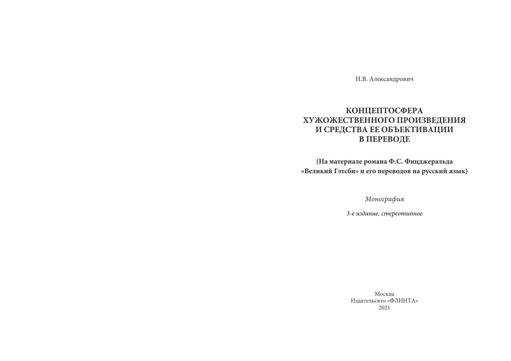 Концептосфера художественного произведения и средства ее объективации в переводе (на материале романа Ф.С. Фицджеральда "Великий Гэтсби" и его переводов на русский язык)