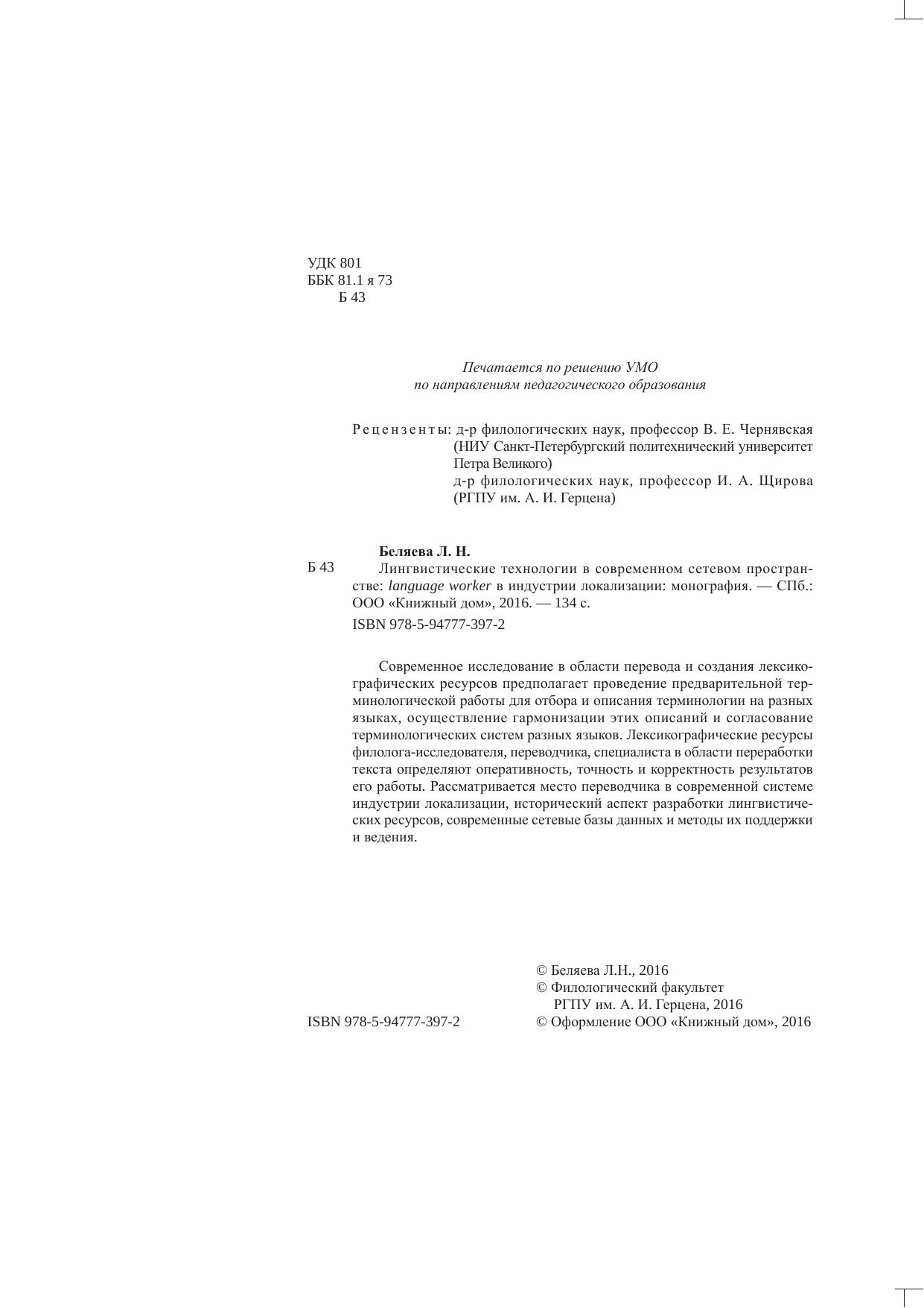 Современное исследование в области перевода и создания лексико-графических ресурсов предполагает проведение предварительной терминологической работы для отбора и описания терминологии на разных языках, осуществление гармонизации этих описаний и согласование терминологических систем разных языков. Лексикографические ресурсы филолога-исследователя, переводчика, специалиста в области переработки текста определяют оперативность, точность и корректность результатов его работы. Рассматривается место переводчика в современной системе индустрии локализации, исторический аспект разработки лингвистических ресурсов, современные сетевые базы данных и методы их поддержки и ведения.