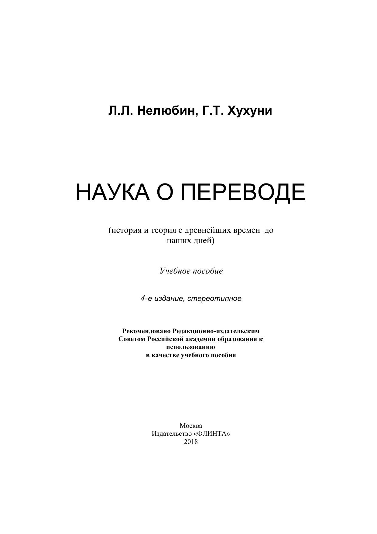 Наука о переводе (история и теория с древнейшим времен до наших дней)