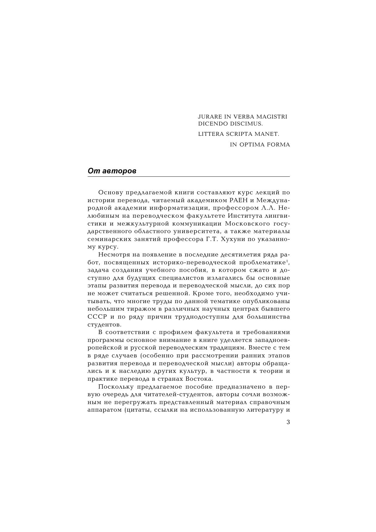 В книге излагается история переводческой мысли (переводоведения), начиная с Древнего мира, античности до наших дней. Подробно рассматривается развитие западноевропейского и русского перевода, создание теории перевода как науки.