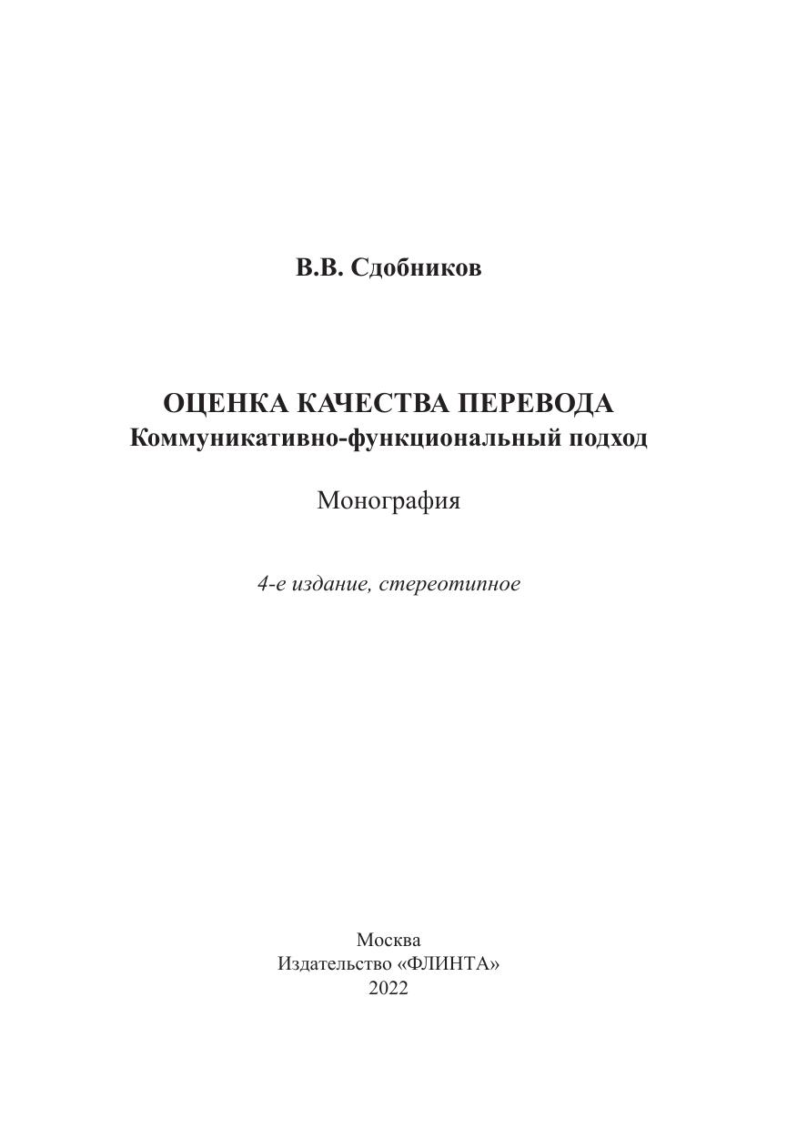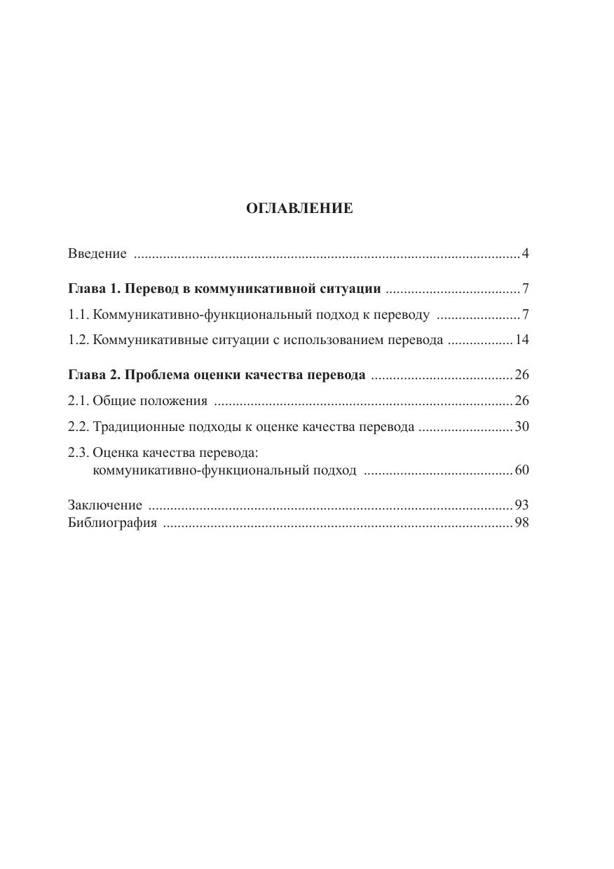 В монографии рассматривается проблема оценки качества перевода с точки зрения коммуникативно-функционального подхода, противопоставляемого традиционному текстоцентрическому подходу. Коммуникативно-функциональный подход предполагает изучение закономерностей переводческого процесса в рамках определенных коммуникативных ситуаций. Предлагается классификация коммуникативных ситуаций с использованием перевода. Особое внимание уделяется определению субъектов оценки качества перевода в разных коммуникативных ситуациях.