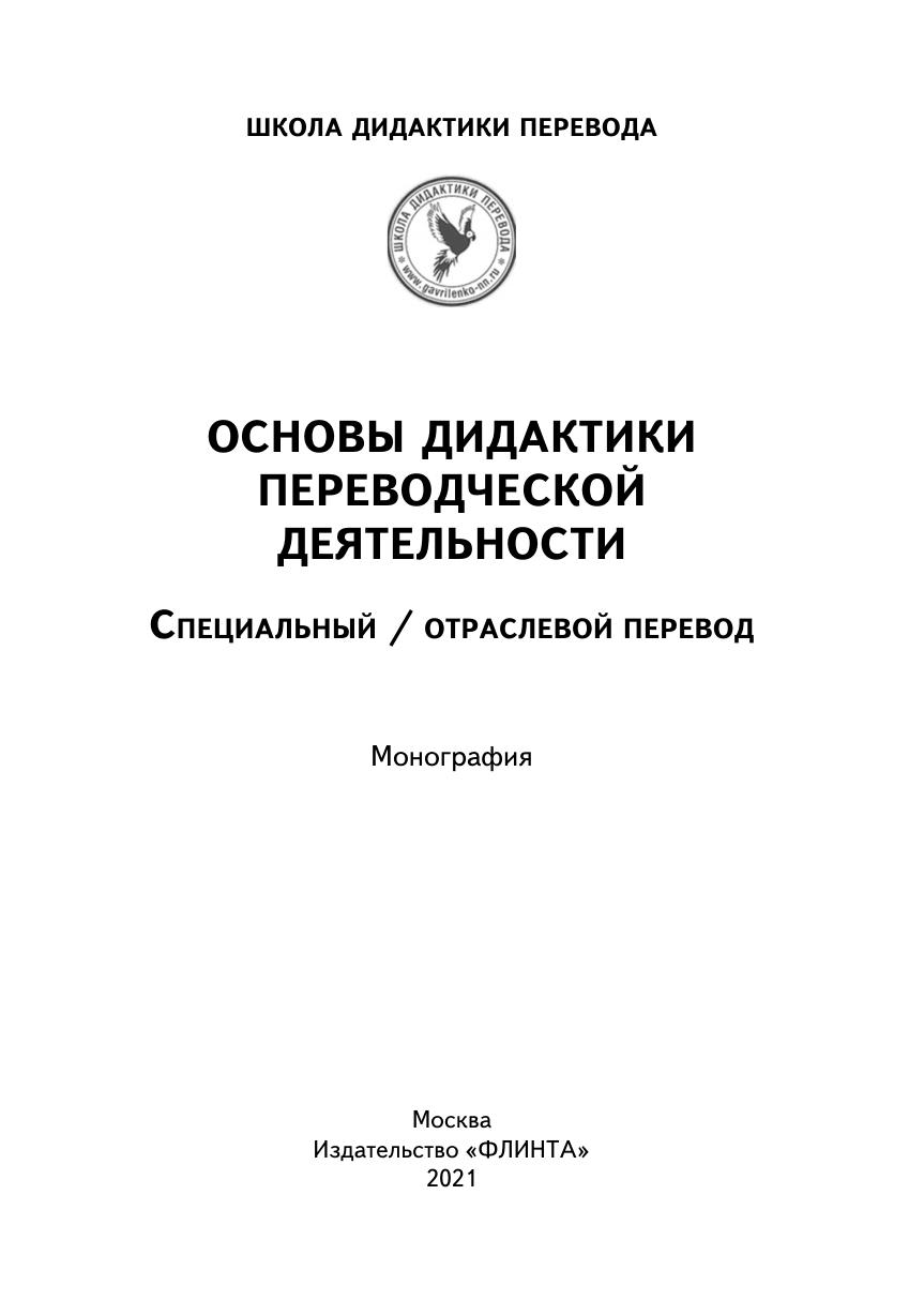 Основы дидактики переводческой деятельности: специальный/отраслевой перевод
