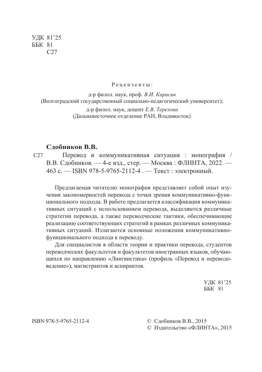 Для специалистов в области теории и практики перевода, студентов переводческих факультетов и факультетов иностранных языков, обучающихся по направлению «лингвистика» (профиль «Перевод и переводо-ведение»), магистрантов и аспирантов.